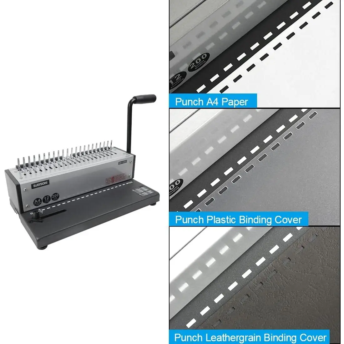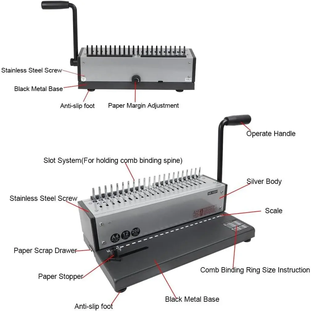 【Punch and Bind with Ease】Manually punches up to 12 sheets (A4, letter size, A5, B5, etc.) and binds up to 200 sheets with 22mm (7/8") comb rings, ideal for your document needs