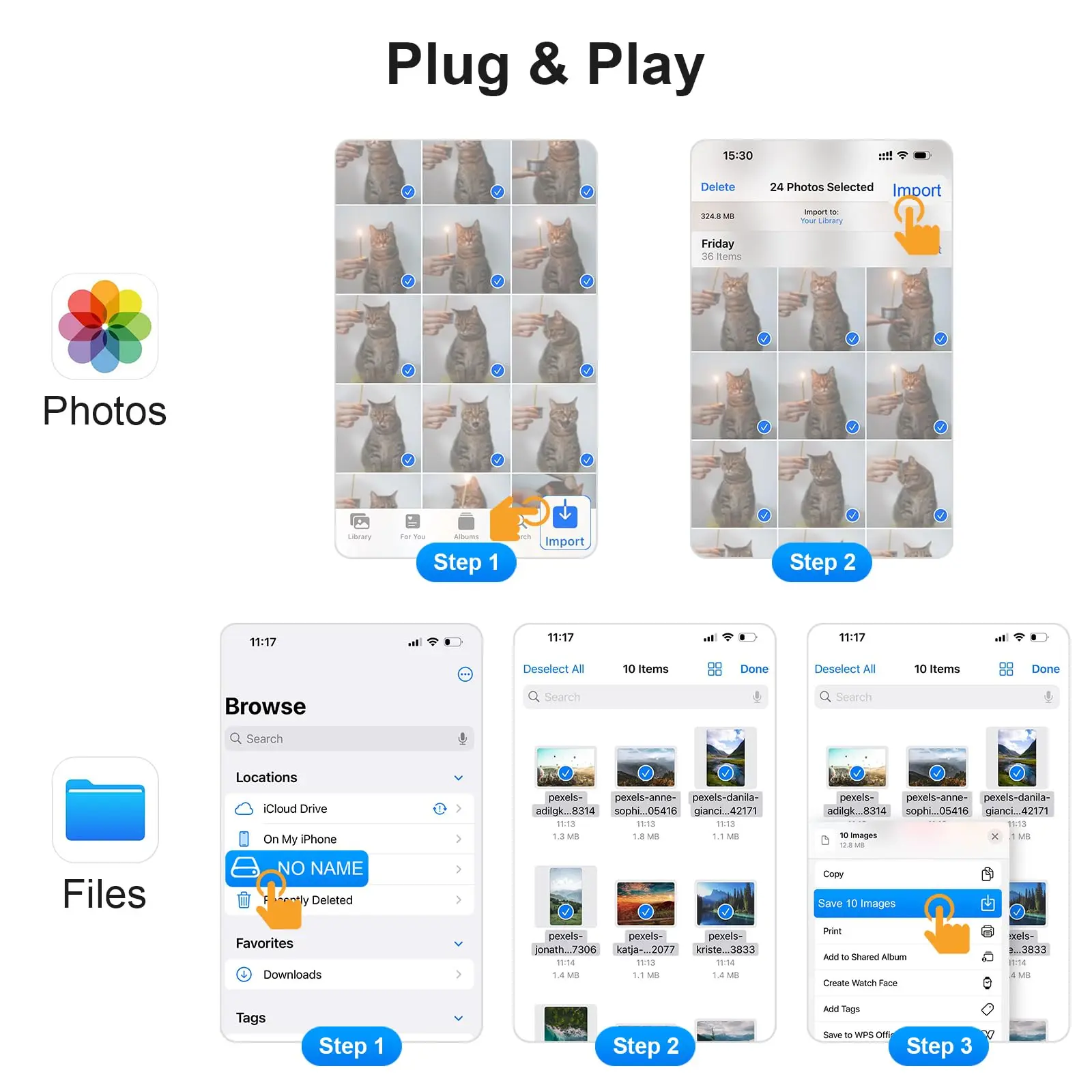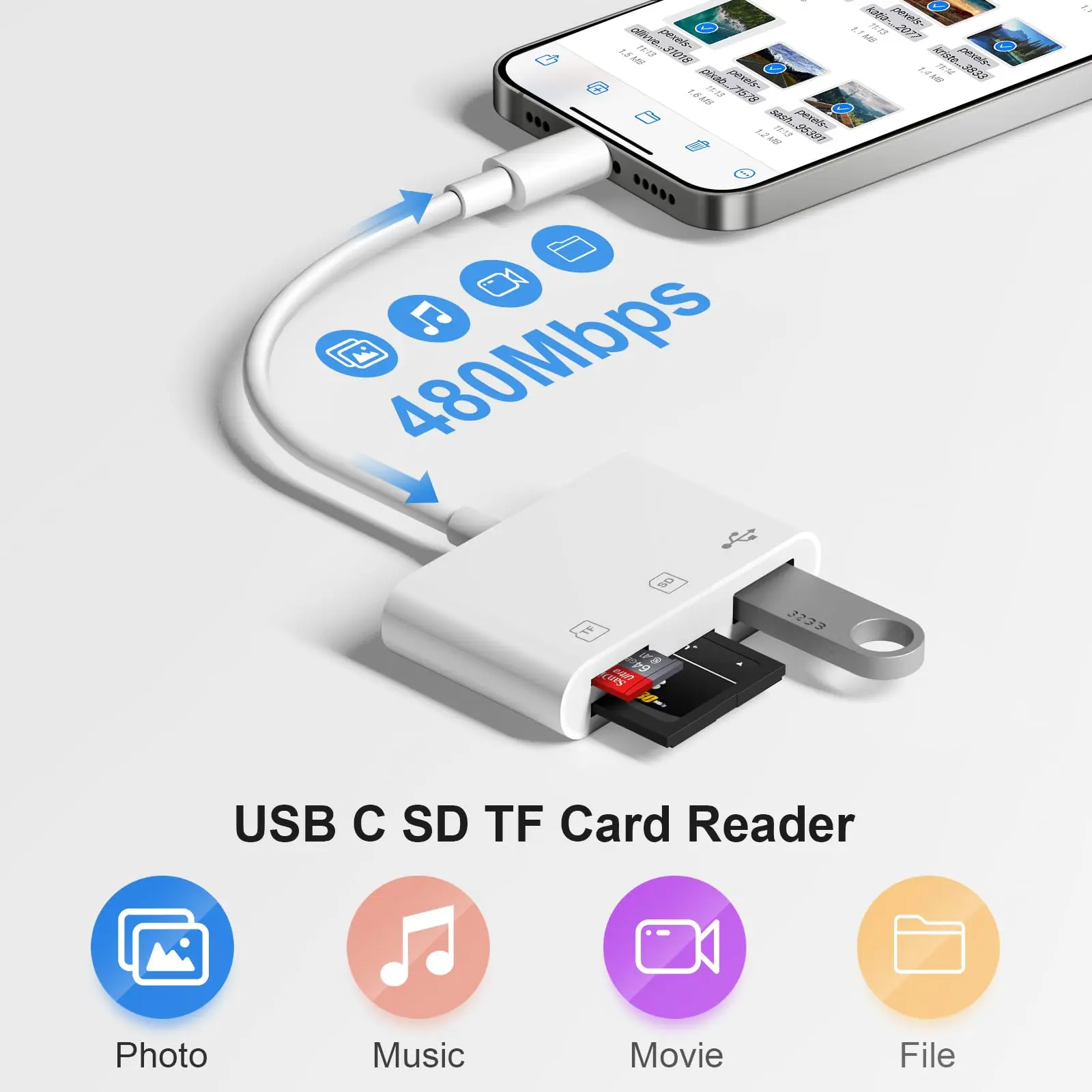 [Two-way Transfer]: Two-way transfer suitable for iOS 13 -16 devices. Import data from SD/TF card to iPhone/iPad, or export the file from iPhone/iPad to SD/TF card. Include Movies, Music, Word, PowerPoint, Excel, PDF, etc.