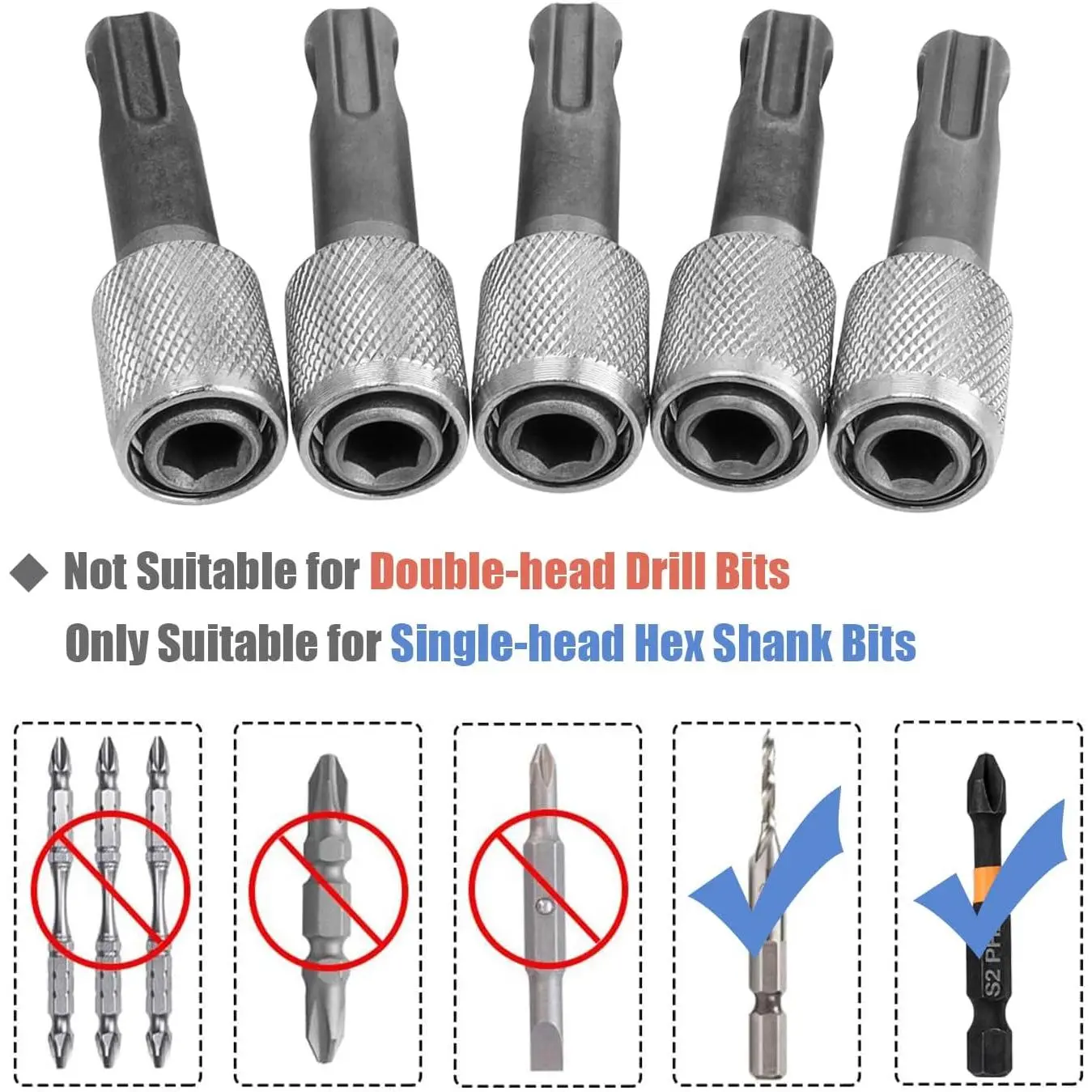 Built-in spring beads locking mechanism, quick change and release hex shank bits to improve work efficiency.