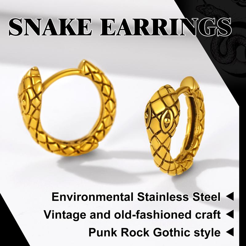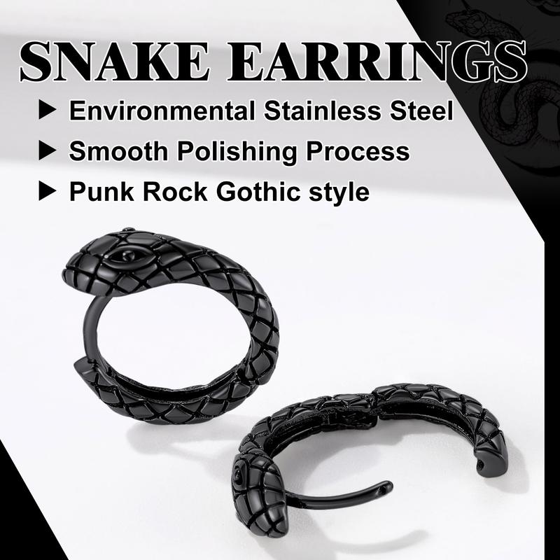 5. FindChic Snake Hoop Earrings Stainless Steel Animal Gothic Punk Serpent Hip Hop Dangle Drop Earring Unisex For Women Men Girlfriend Boyfriend
