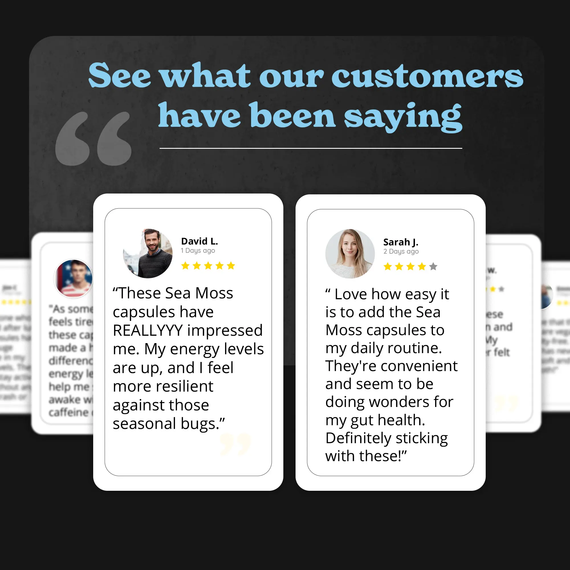 ·These Sea Moss capsules are lab tested for purity and free from heavy metals, fillers, and additives, our Sea Moss Capsules are suitable for vegans.