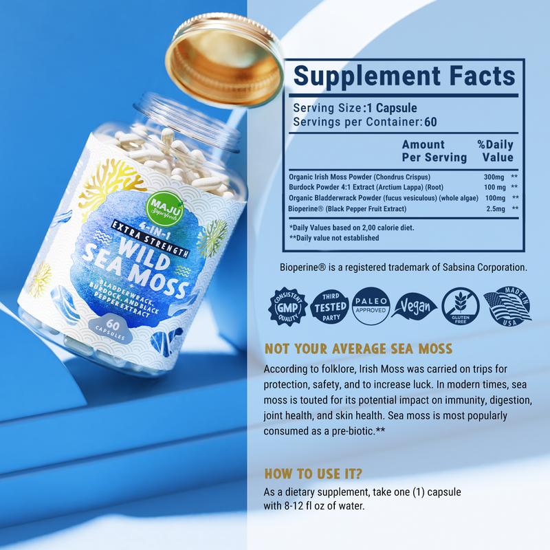 ·Maju's 30-Day Promise: Not satisfied with our wild sea moss capsules? We'll refund you, no questions asked.