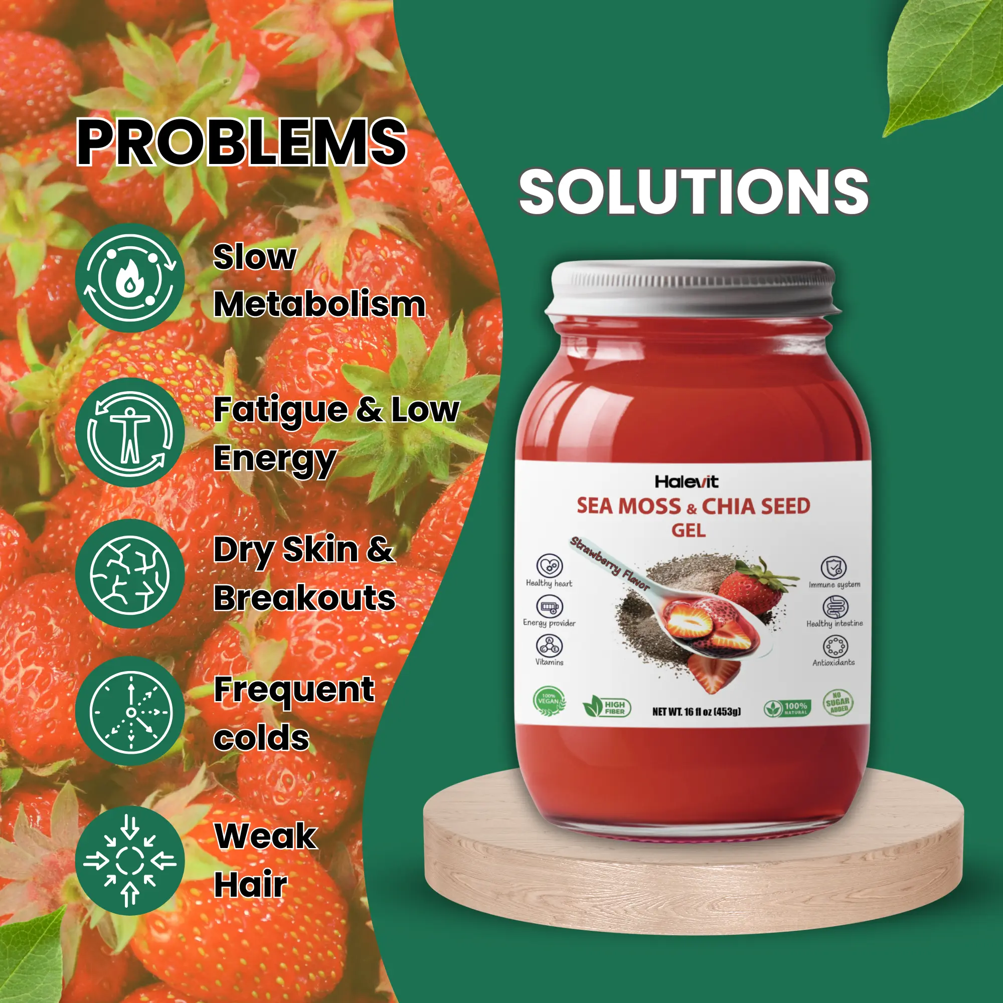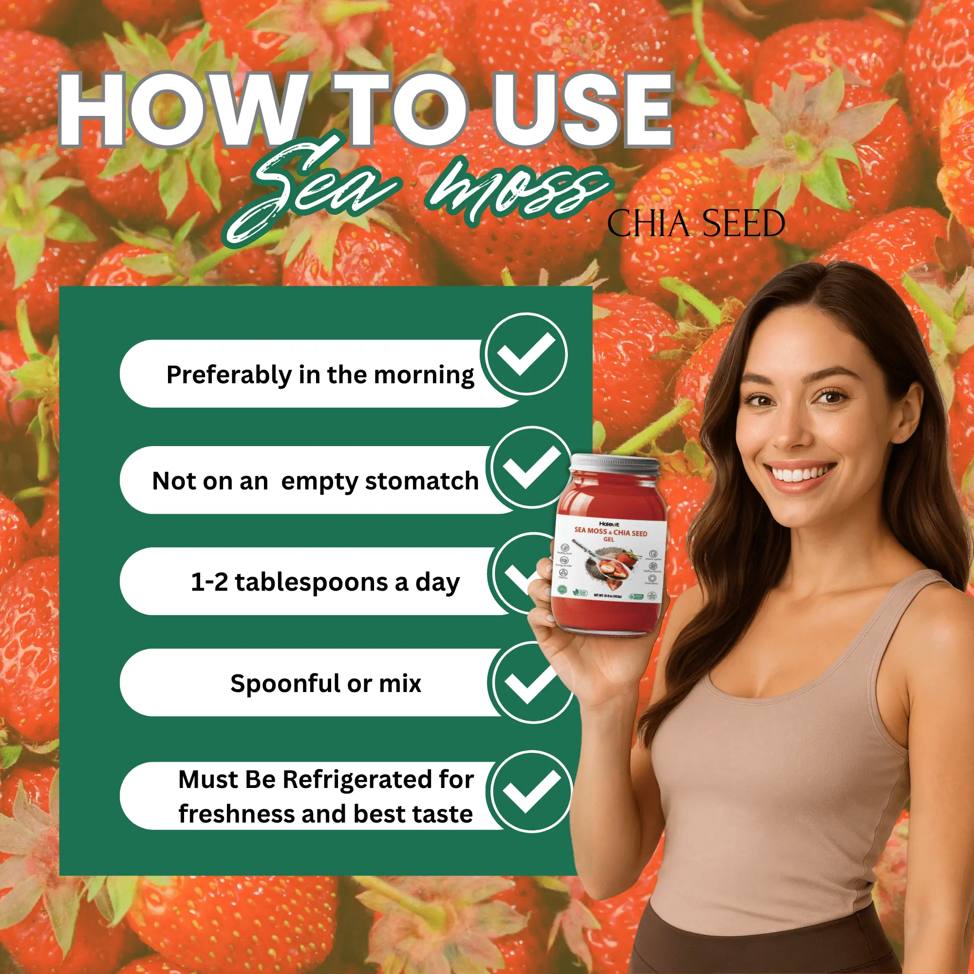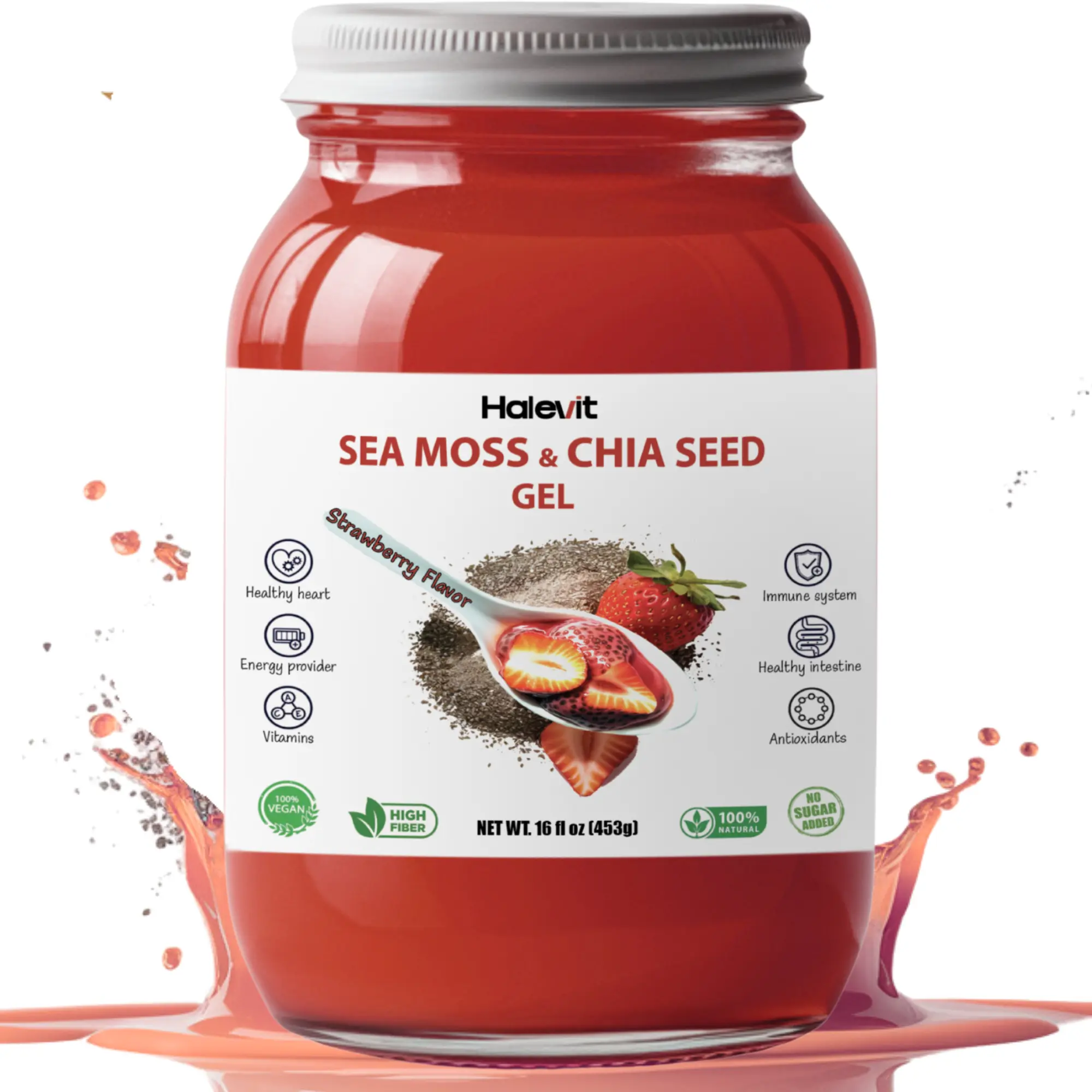 Strawberry-Infused Superfood Gel – A refreshing strawberry flavor combined with the powerful benefits of sea moss and chia for a naturally delicious wellness boost.