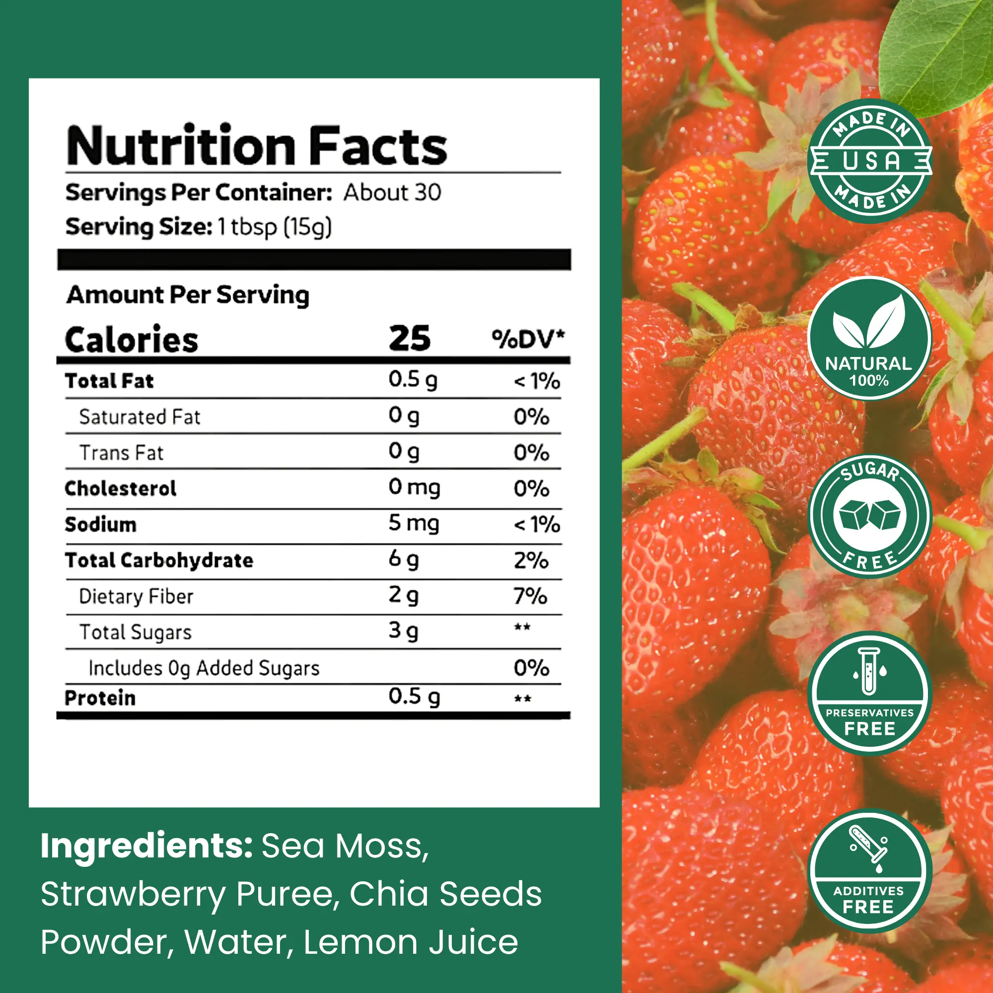 Versatile & Easy to Use – Enjoy this smooth sea moss gel in smoothies, oatmeal, or as a natural strawberry-flavored spread.
