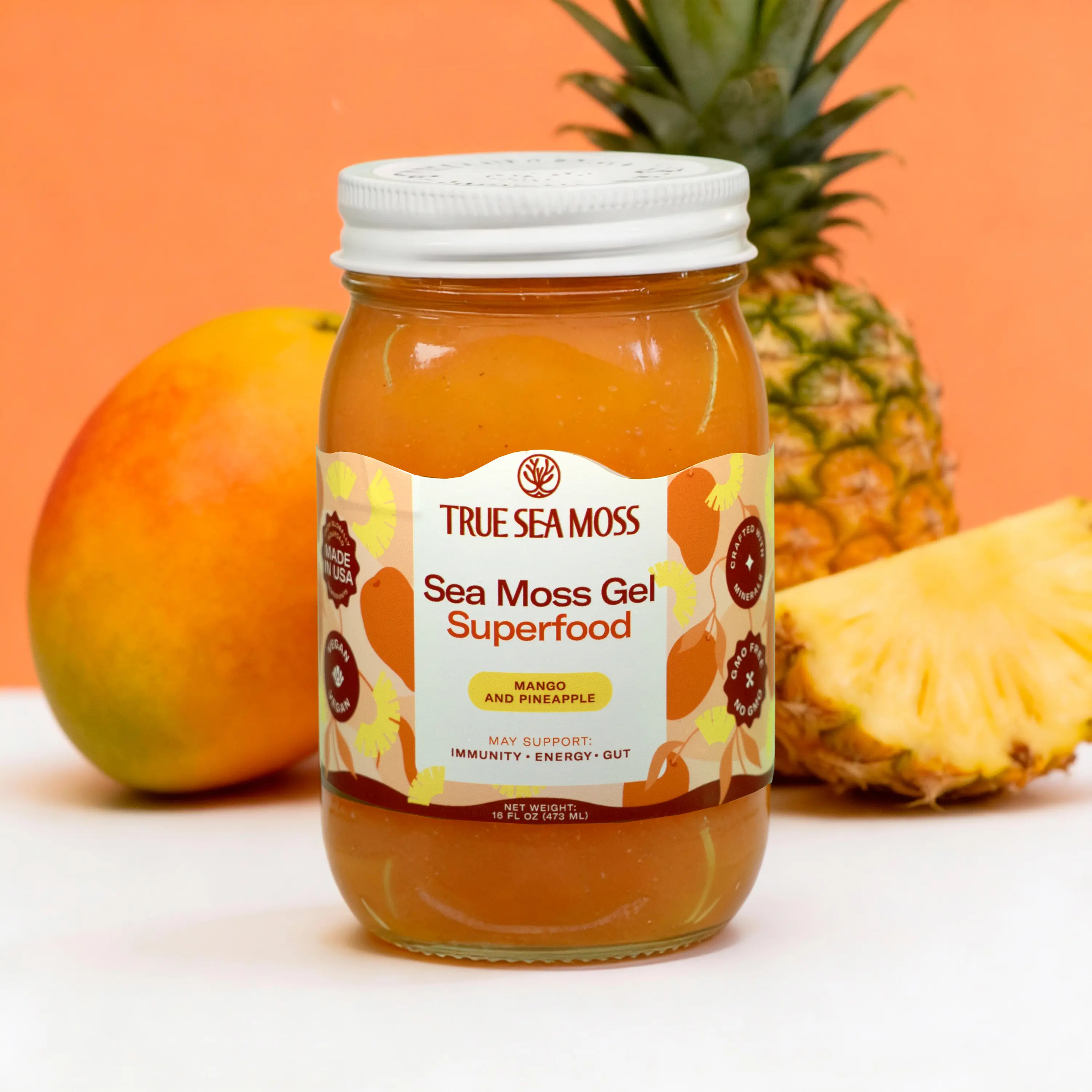 Indulge in the tropical fusion of True Sea Moss Mango-Pineapple Sea Moss Gel, a premium blend crafted to elevate your wellness routine. This gel combines wildcrafted Irish sea moss with luscious mango and pineapple purees, delivering a delightful taste and a wealth of health benefits.