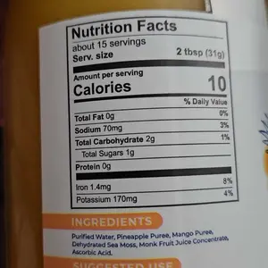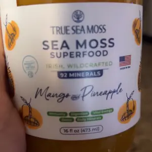 • Ingredients: Purified water, wildcrafted Irish sea moss, mango puree, pineapple puree, lime puree, monk fruit juice concentrate, and ascorbic acid.