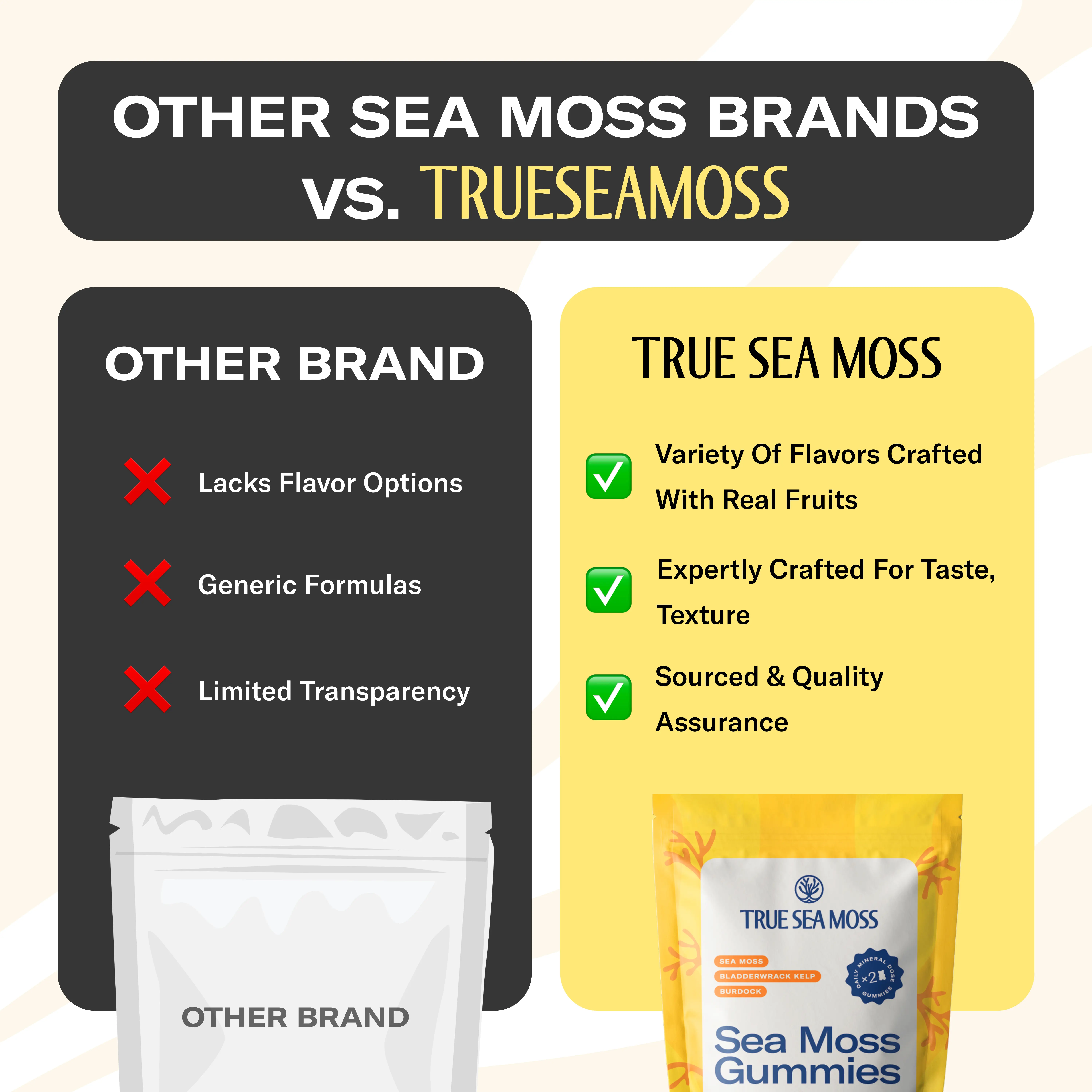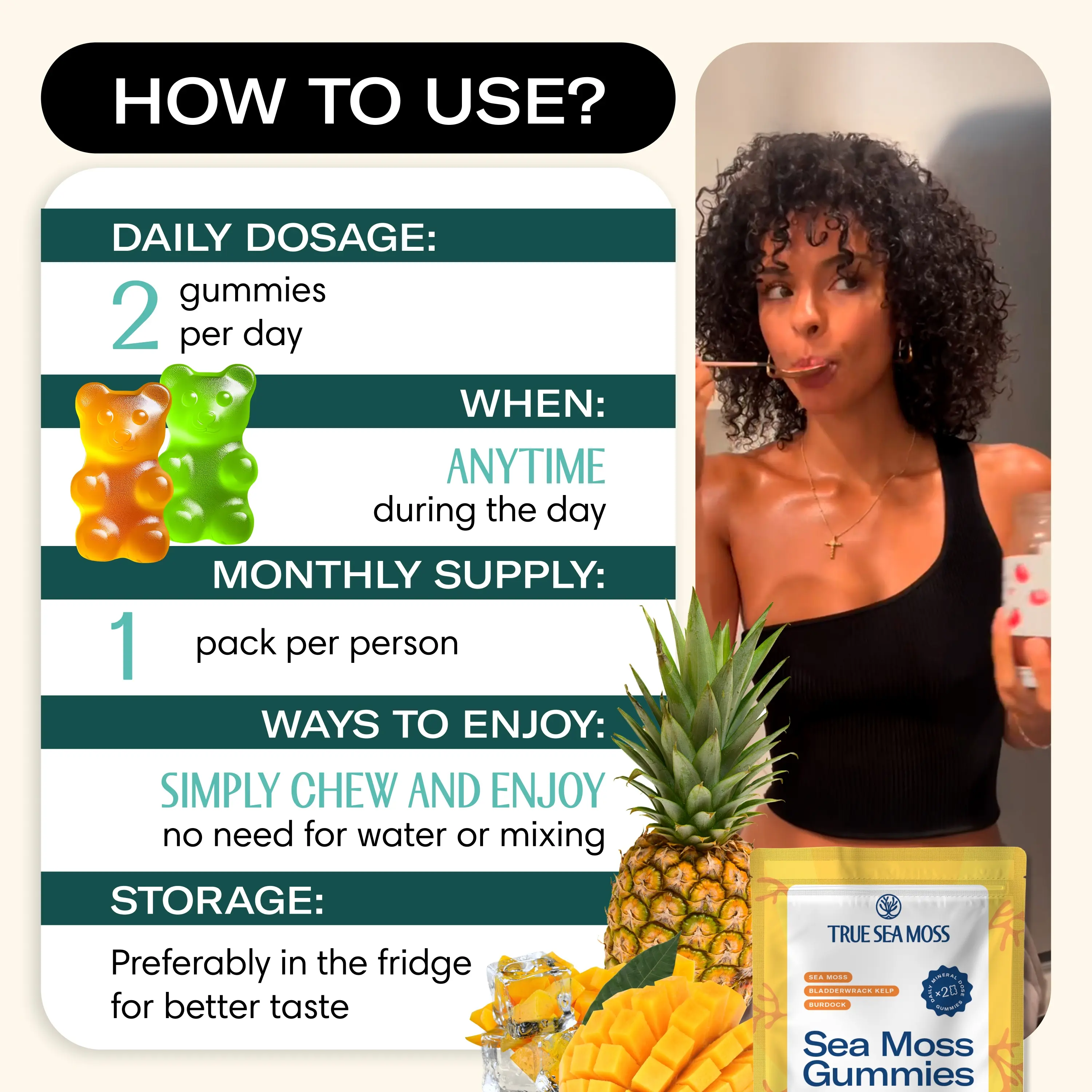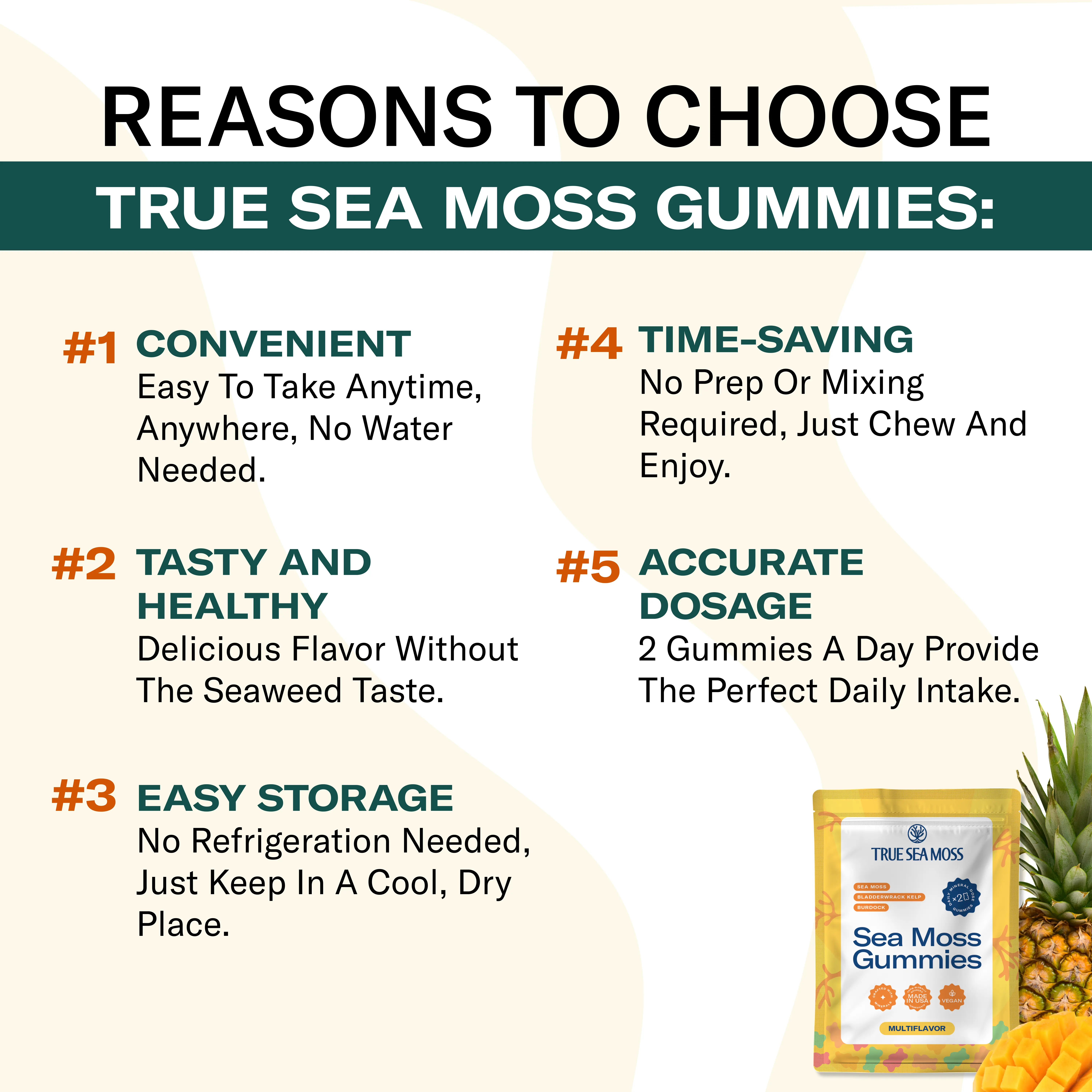 Thanks for the sample of True Sea Moss gummies! The gummy‘s taste amazing. If you want kids to eat true sea moss, the gummies would be an easy way. They do not taste “healthy“. I will Be ordering again:)