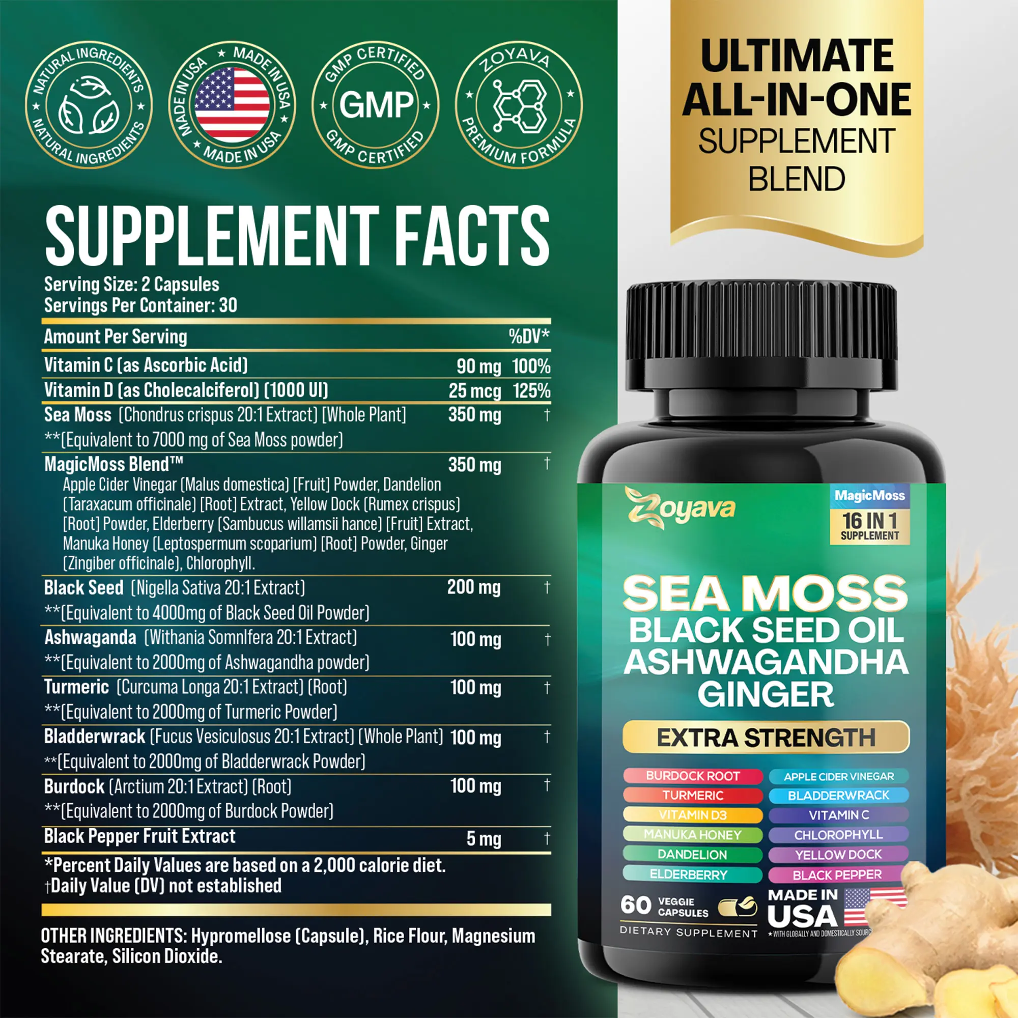 ·Plus: Bladderwrack, Burdock Root, Elderberry, Ginger, and more – A super blend for full-body support
