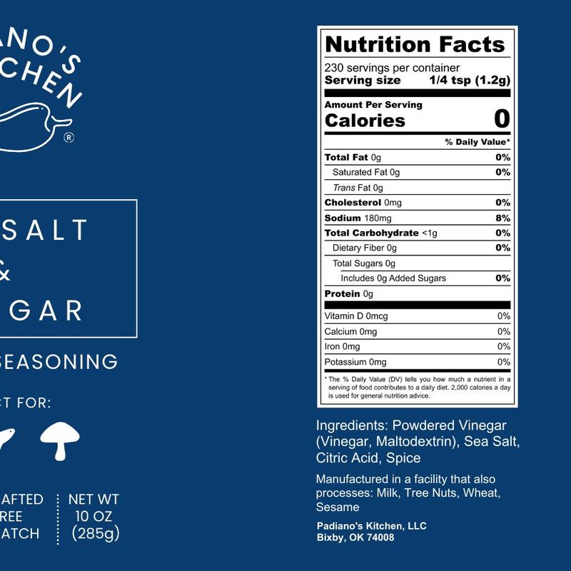 At Padianoâs Kitchen, we craft bold, versatile seasonings using only the best ingredientsâno shortcuts, no fillers. Sea Salt and Vinegar Seasoning transforms everyday dishes into extraordinary creations.