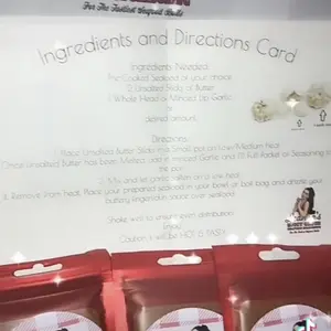Waited all week for this seafood boil mix, but the package arrived ripped with seasoning spilling out. Contacted the owner, but they refused to offer a refund or a replacement despite clear evidence of the damage. Extremely disappointed with the poor customer service. Would not recommend.