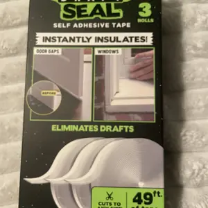 This seal is incredible. It’s clear and flexible like rubber. It sticks without peeling off like the store bought brands, stays put, and stops the draft! I bought extra to give to family members with the same problem!