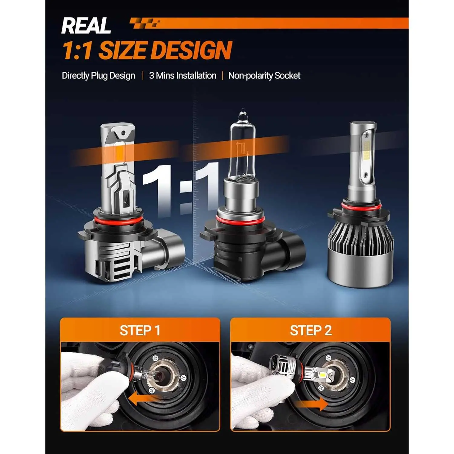 ·(1:1 REAL Size & Plug and Play): The Sealight 9005 Light bulbs feature a near-identical 1:1 mini design as original bulbs, requiring no external drivers or wires for a true plug-and-play experience. 3 MINS quick installation