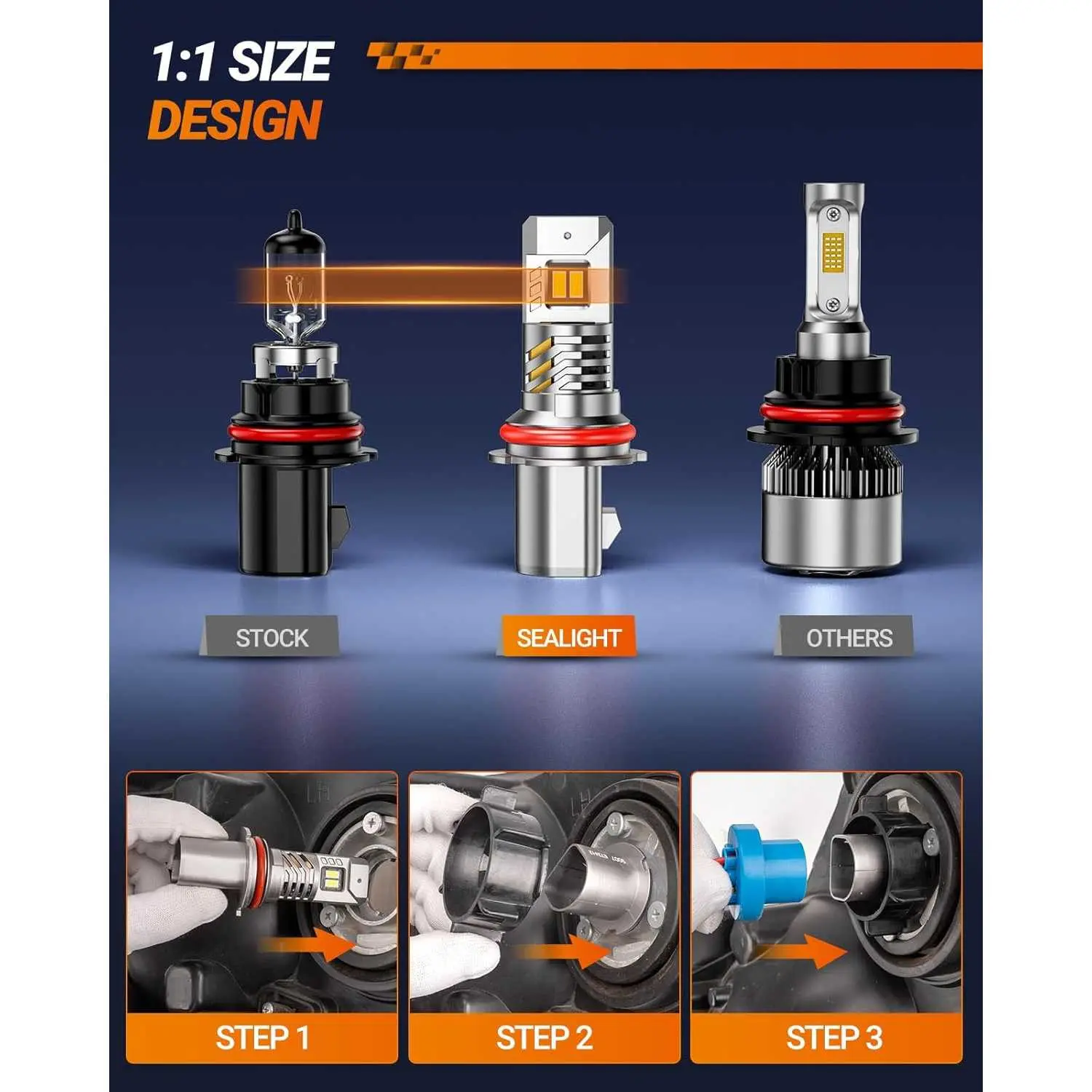 ·5 MINS PLUG AND PLAY: SEALIGHT HB5/9007 Bulb's body design is close to the stock bulbs. Plug and play. No additional wiring or parts and extra adapters needed