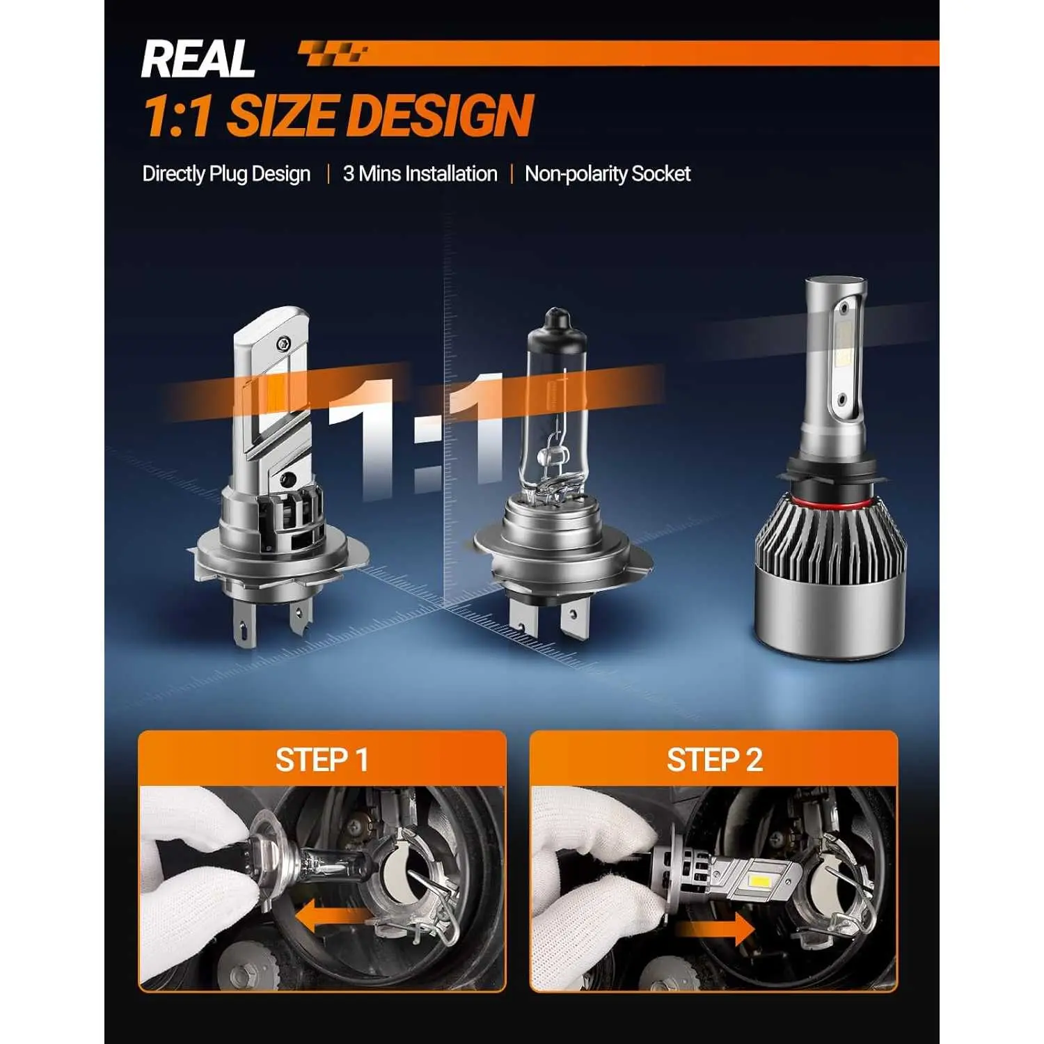 ·(1:1 Size & Easy Installation): The H7 Light bulbs feature a near-identical 1:1 mini design as original bulbs, requiring no external drivers or wires for a true plug-and-play experience.