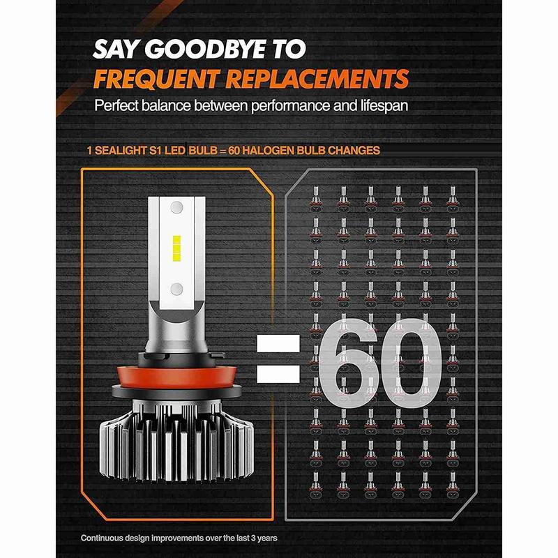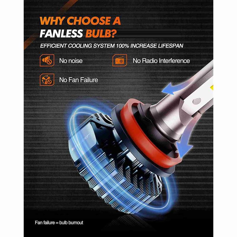 ·Better Driving Experience: The H11 led bulbs is 400% brighter than Halogen bulbs, 100% wider vision than other bulbs, focus beam pattern illuminates reveal road signs, without blinding other drivers