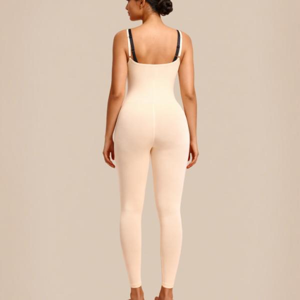 Made of high-elastic compression fabric, this bodysuit is comfortable and breathable. It's very light and skin-friendly, ensuring you won't feel stuffy. The seamless design is lightweight and invisible, easily combining with any clothing. The fabric composition is 57% Nylon + 43% Spandex.