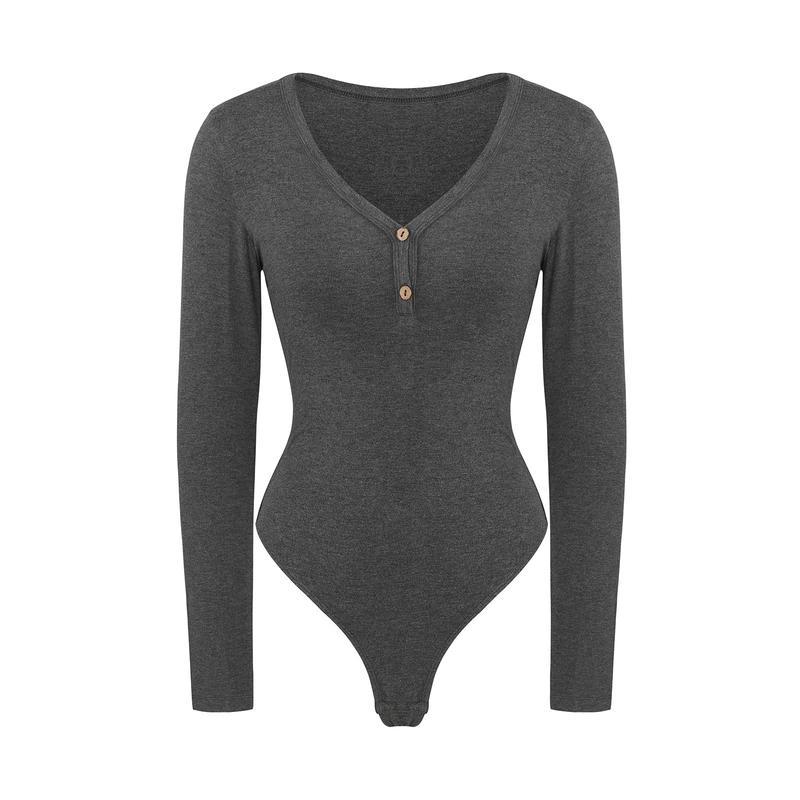 The image shows a long-sleeved bodysuit, highlighting its seamless design and long sleeves. Perfect for women looking for a versatile and comfortable top.
