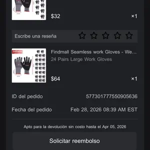 Nunca llegó mi pedido pagué $75.84 y solo llegó el de 12 guantes y el de 24 nunca llegó muy mal servido