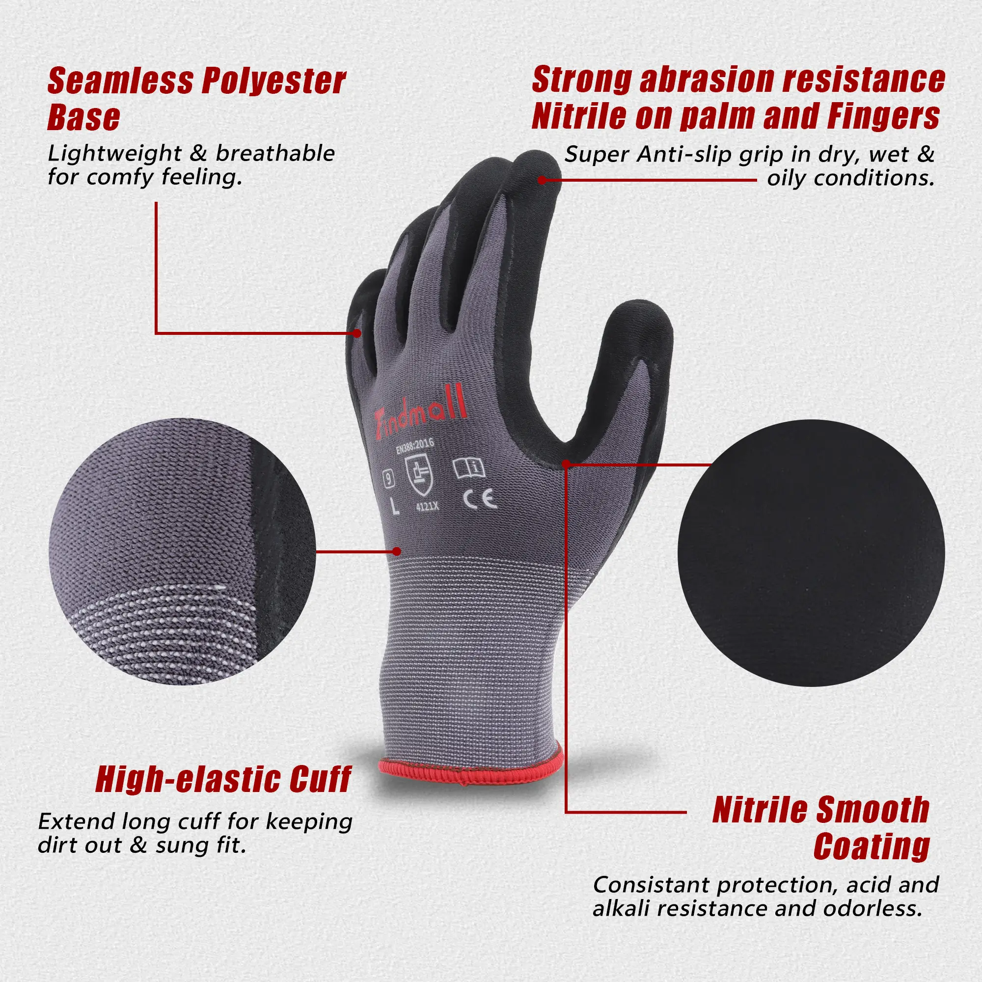 6 Pairs Extra Large Work Gloves