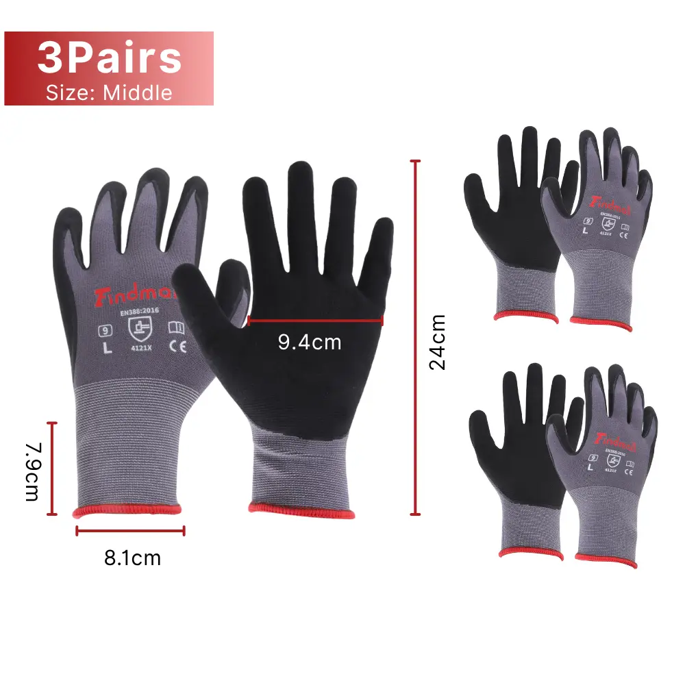 3 Pairs Middle Work Gloves