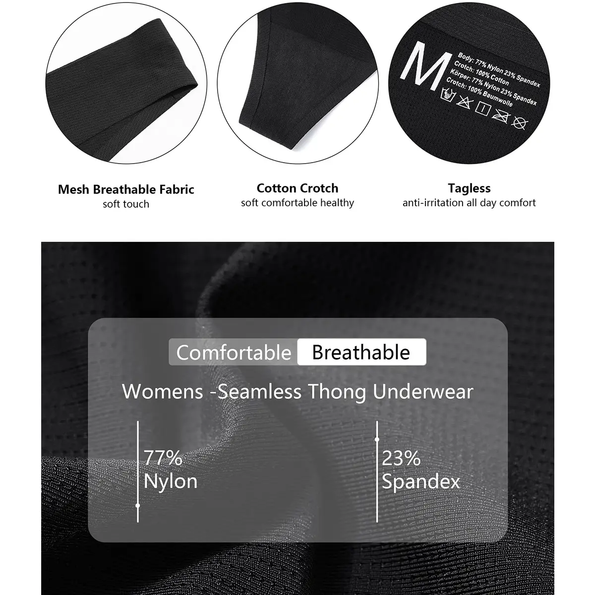 【Ice Silk Touch】Seamless Womens Thong Underwears are designed with air holes, highly breathable. Thin and soft, fit your body comfortably, feel ice silk touch, provide you with a better fashion and comfortable wearing experience.