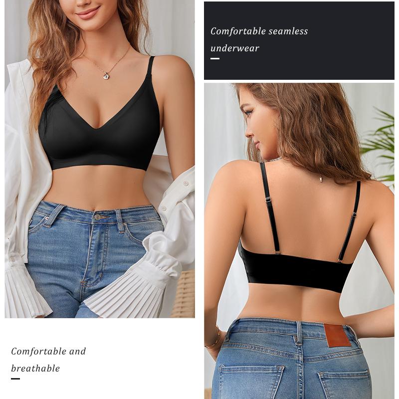 The wrap design ensures next-to-skin comfort, avoiding any squeeze. The seamless bra offers a smoothing, cloud-like feel, perfect for showing off your charm. The deep V-neck design is ideal for various activities, providing a charming look. 🌟