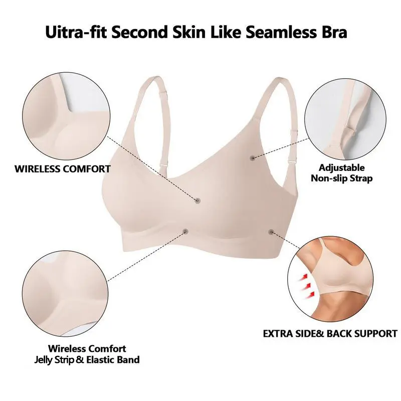 ·【Jelly Strip Bras for Women】Our bra features a W-shaped liquid jelly strip that lifts and shapes your chest from the bottom and sides towards the center, creating a full shape, without the discomfort of a traditional underwire bra. The lightweight and removable padding in our wireless push up bras provides a cloud-like softness, ensuring maximum comfort.