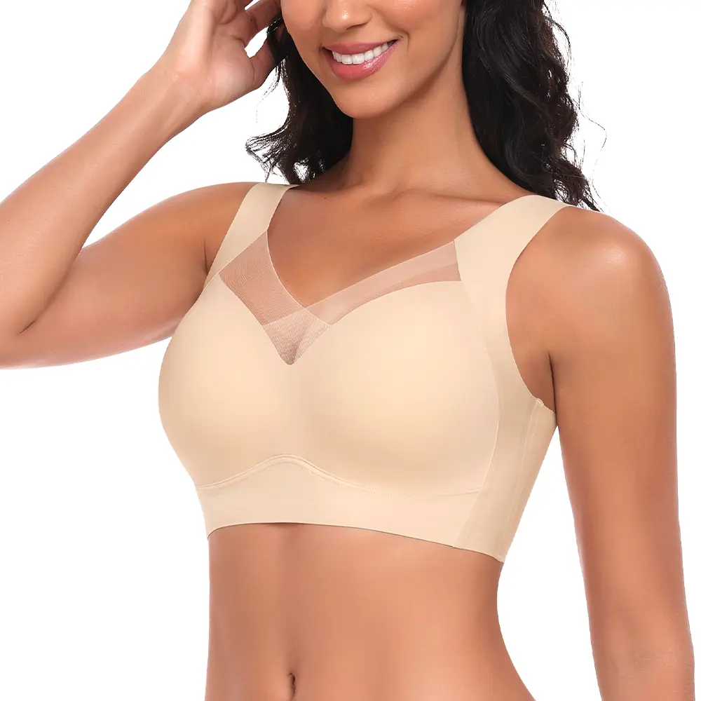 This bra is soft, breathable, and gives great lift without any underwire. The seamless design makes it invisible under clothes and super comfy for all-day wear. The fit is true to size and the material feels high quality.