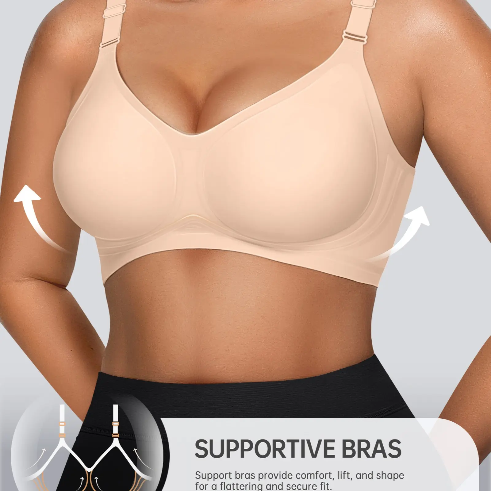 First wire free bra I’ve found that I actually love! I have a large chest and I’ve been nursing a combined total of 3 years so I need a lot of support and this bra actually does that and makes me feel confident and comfortable at the same time! And they hold up great in the washing machine!