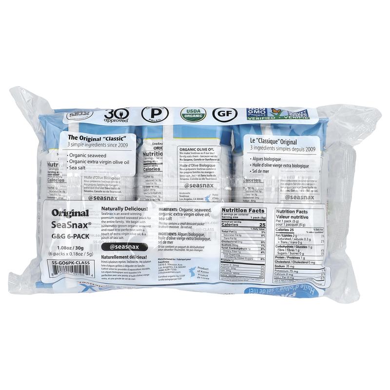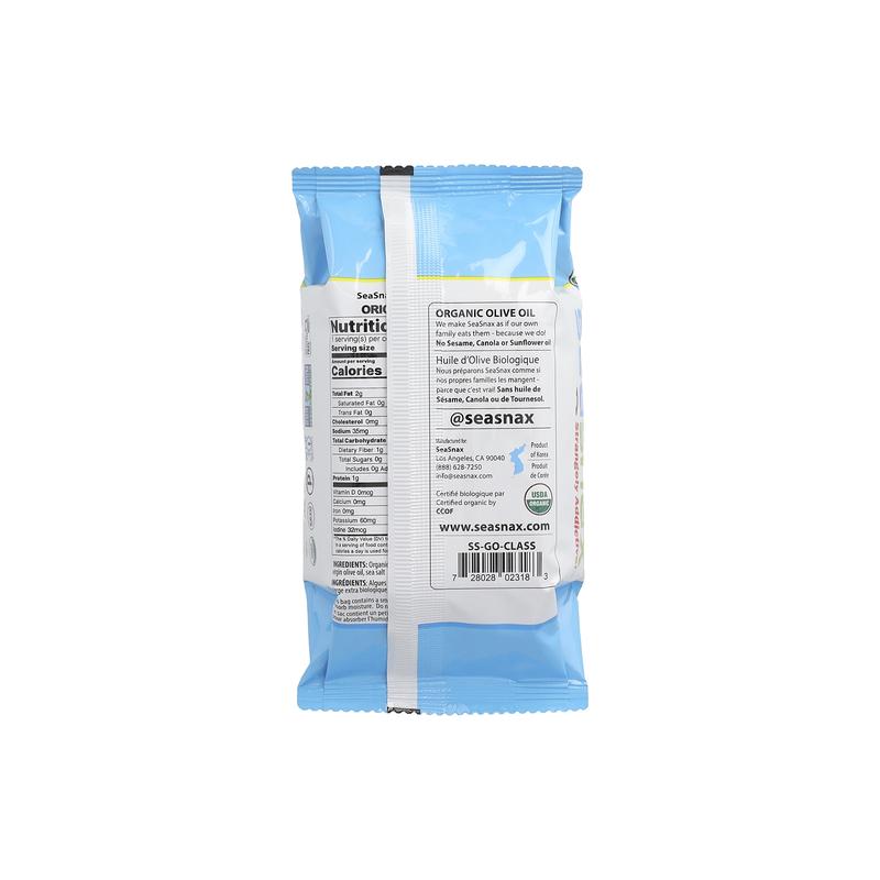 SeaSnax Organic Seaweed, Extra Virgin Olive Oil & Sea Salt, 6 Pack, 0.18 oz (5 g) Each