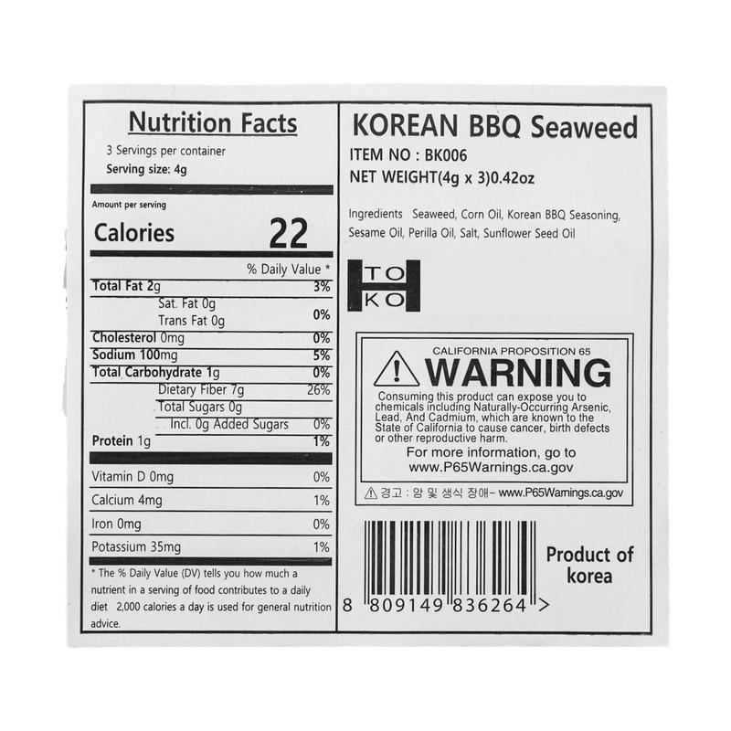 Whether you're a K-food enthusiast or a curious snacker, these seaweed sheets will tantalize your taste buds and leave you craving more. Grab your 0.42 oz pack now and experience the irresistible crunch of the sea with a smoky BBQ twist! 🇰🇷✨