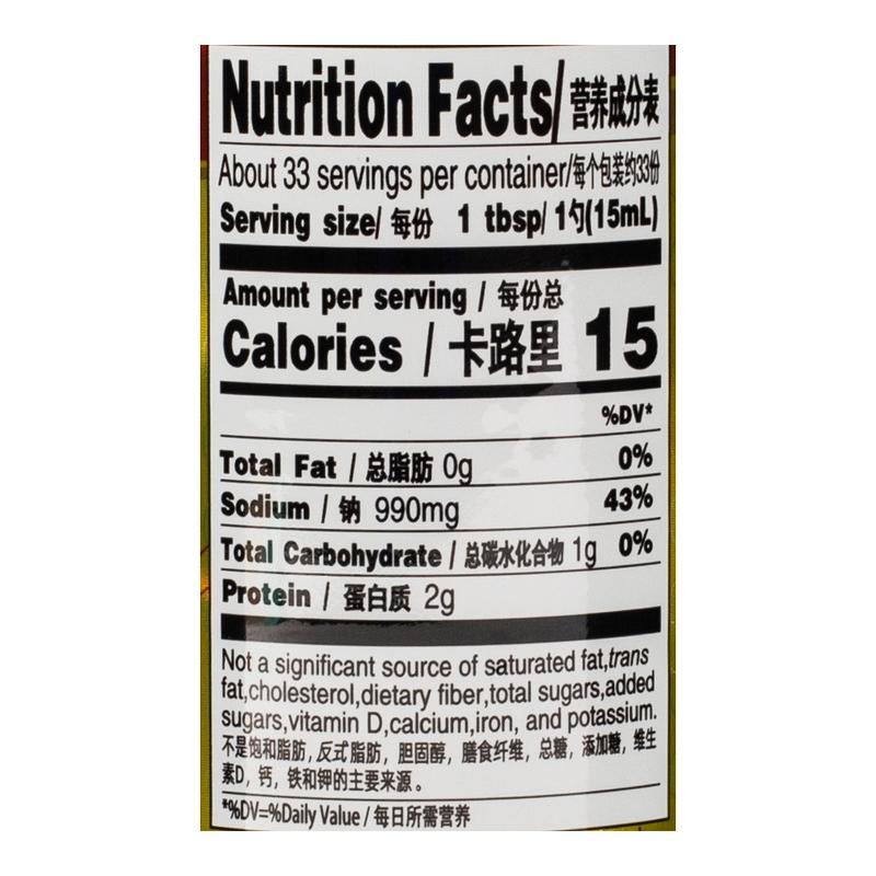 Ingredient: water, soybeans, salt, wheat, monosodium glutamate, sugar, yeast extract, disodium 5'-flavoring nucleotide, disodium 5'-inosinate, preservatives, sucralose