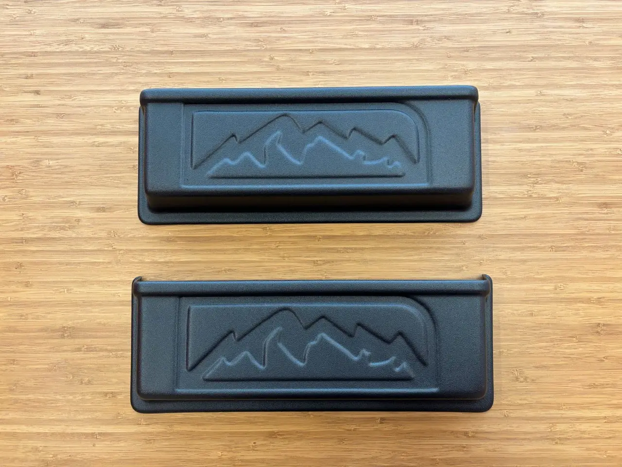 We added the mountains from our logo to the front to give them that extra bit of style. They work perfectly on regular height seat bases on either the front and rear. They will work on the inside of the passenger tall seat base also.