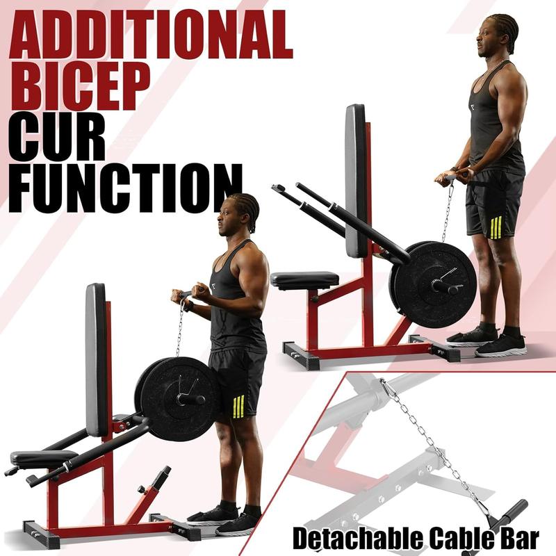 ·[Durable Build] Made from heavy-duty steel with premium coatings, the machine features a sweat-resistant seat and backrest for durability and comfort. At 42.7"x26.2"x51.2" with a 400-lb capacity, it fits most home gyms and supports 1" or 2" weight plates (plates not included).