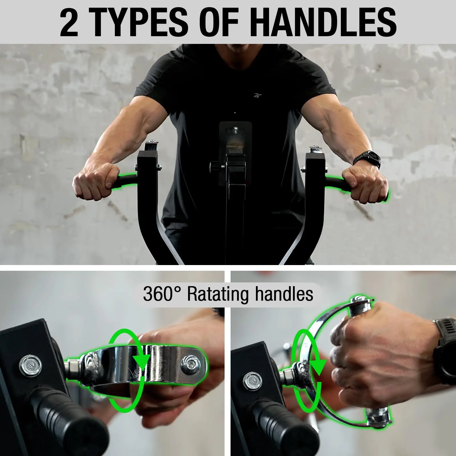 ·[Dual Grip Handles]-This seated row machine plate loaded comes with two different types of grips. The fully rotating grip allows you to rotate your arms naturally for a comfortable motion while rowing, helping to prevent strain and injury. The fixed grip is for precise stimulation, similar to barbell and T-bar row machines. By simply adjusting the width of your grip and the width of your arms to target different muscle groups in your back, you can get the most out of your workout routine.