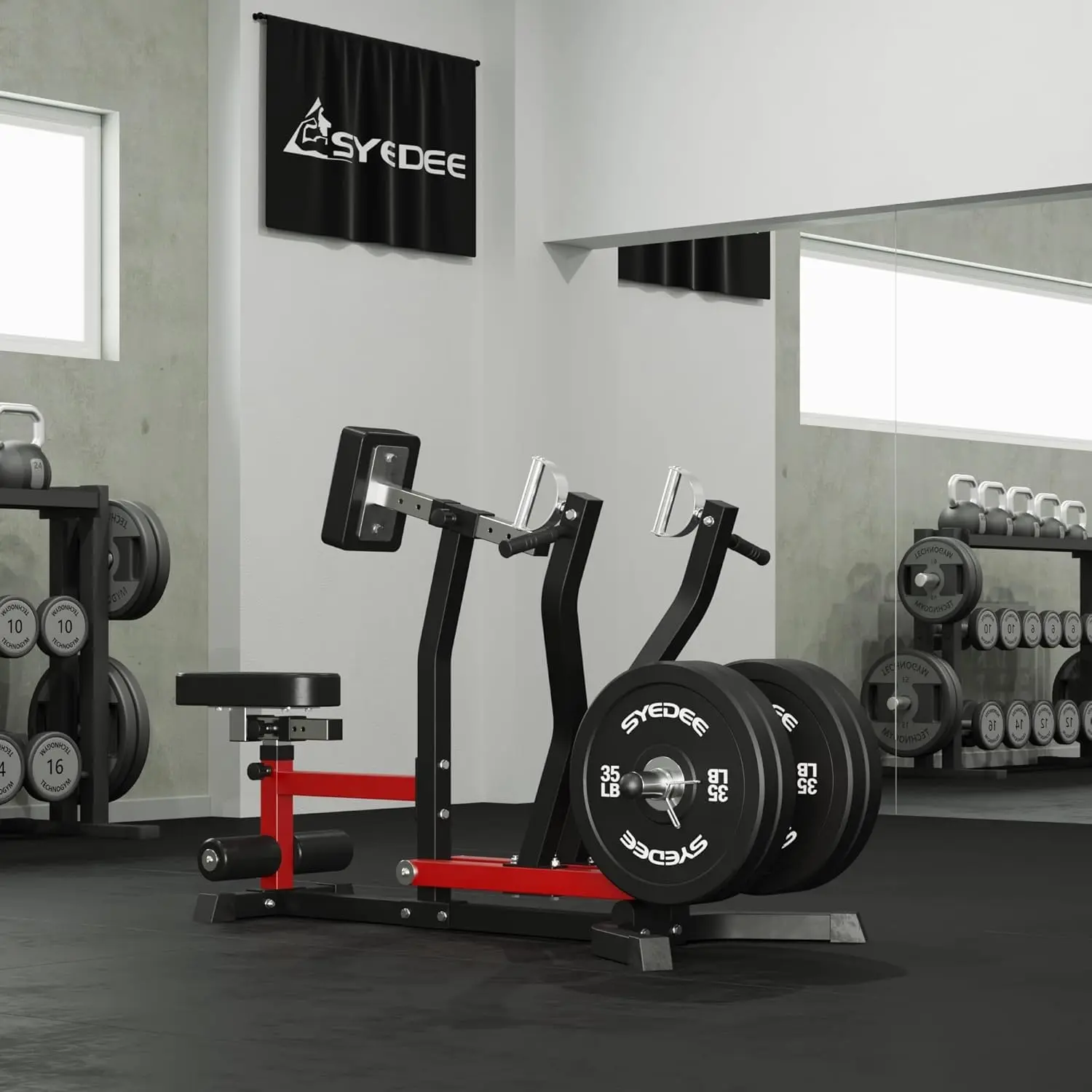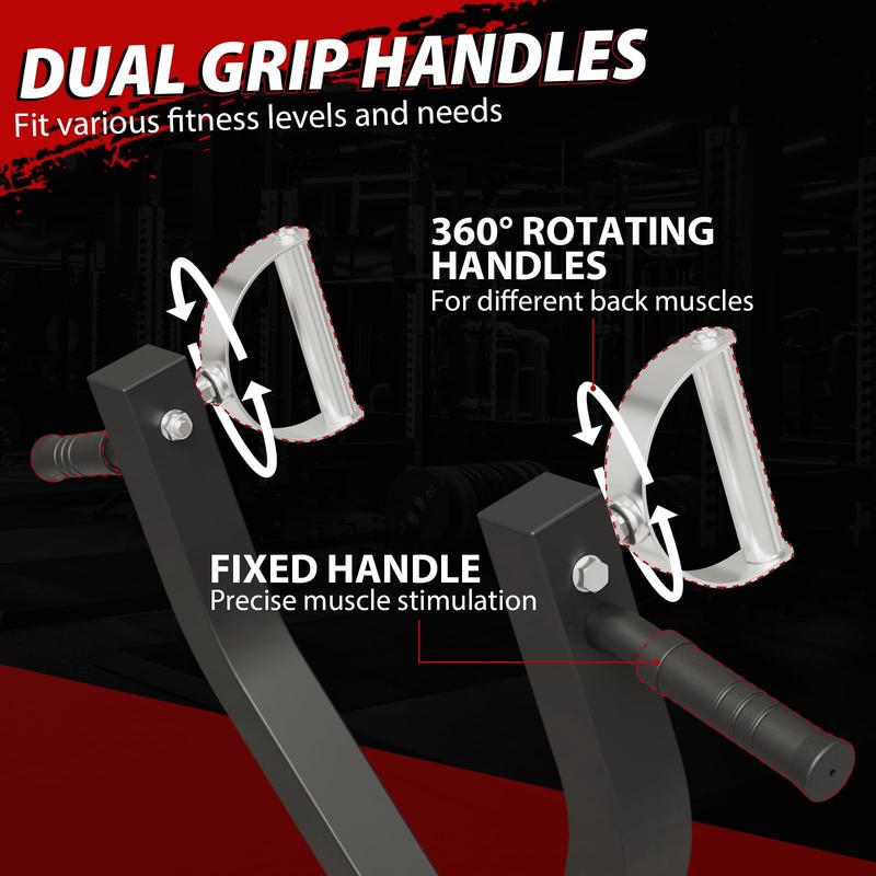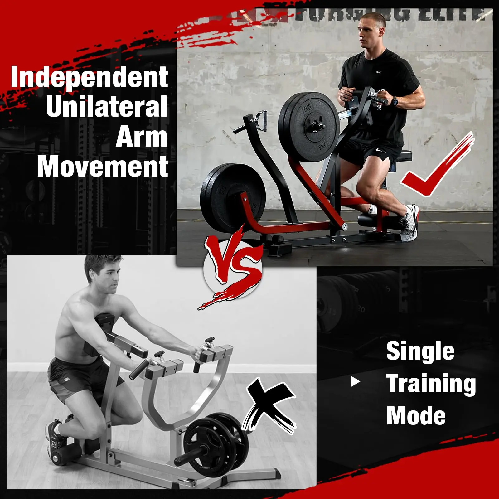 ·[Dual Grip Handles]-This seated row machine plate loaded comes with two different types of grips. The fully rotating grip allows you to rotate your arms naturally for a comfortable motion while rowing, helping to prevent strain and injury. The fixed grip is for precise stimulation, similar to barbell and T-bar row machines. By simply adjusting the width of your grip and the width of your arms to target different muscle groups in your back, you can get the most out of your workout routine.