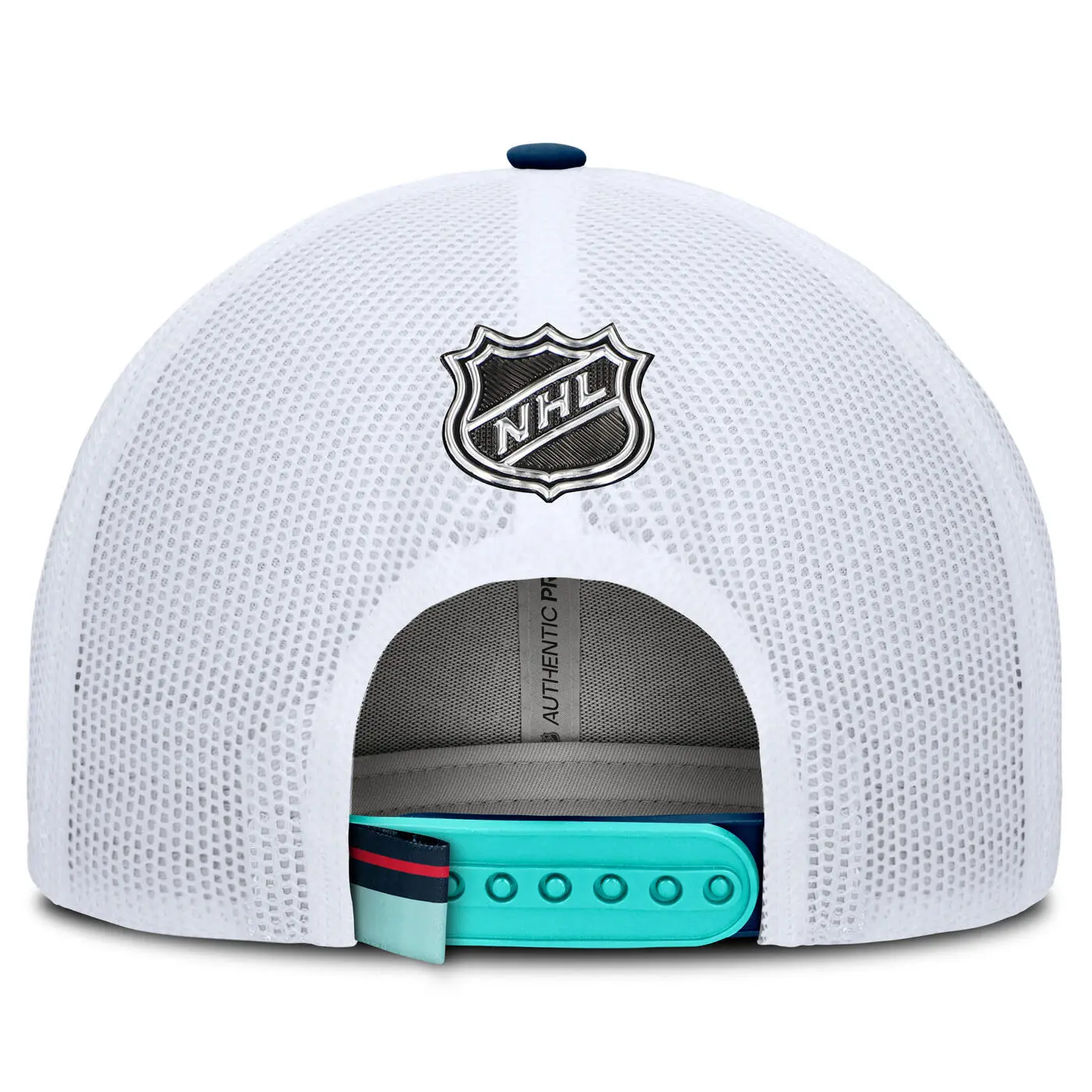 Crafted in a refreshing ice blue, this structured trucker hat features the Seattle Kraken logo and Seattle Kraken text prominently embroidered on the front. The breathable mesh back panels keep you cool, while the structured fit and curved brim provide a classic look with a modern twist. With an adjustable snapback closure, it offers a custom fit for all-day comfort, whether you're cheering at the rink or out and about. Durable and stylish, it's a go-to choice for loyal Kraken fans.