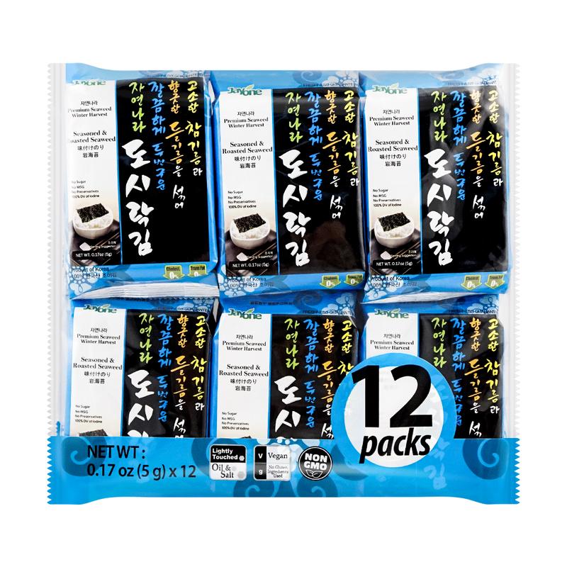 Whether you're looking for a quick pick-me-up or a tasty topping for your rice bowl, JAYONE Seaweed Snacks are your go-to choice. Grab your 12-pack now and experience the crispy, salty goodness of the ocean! ๐๐