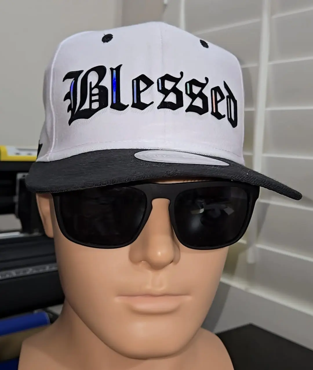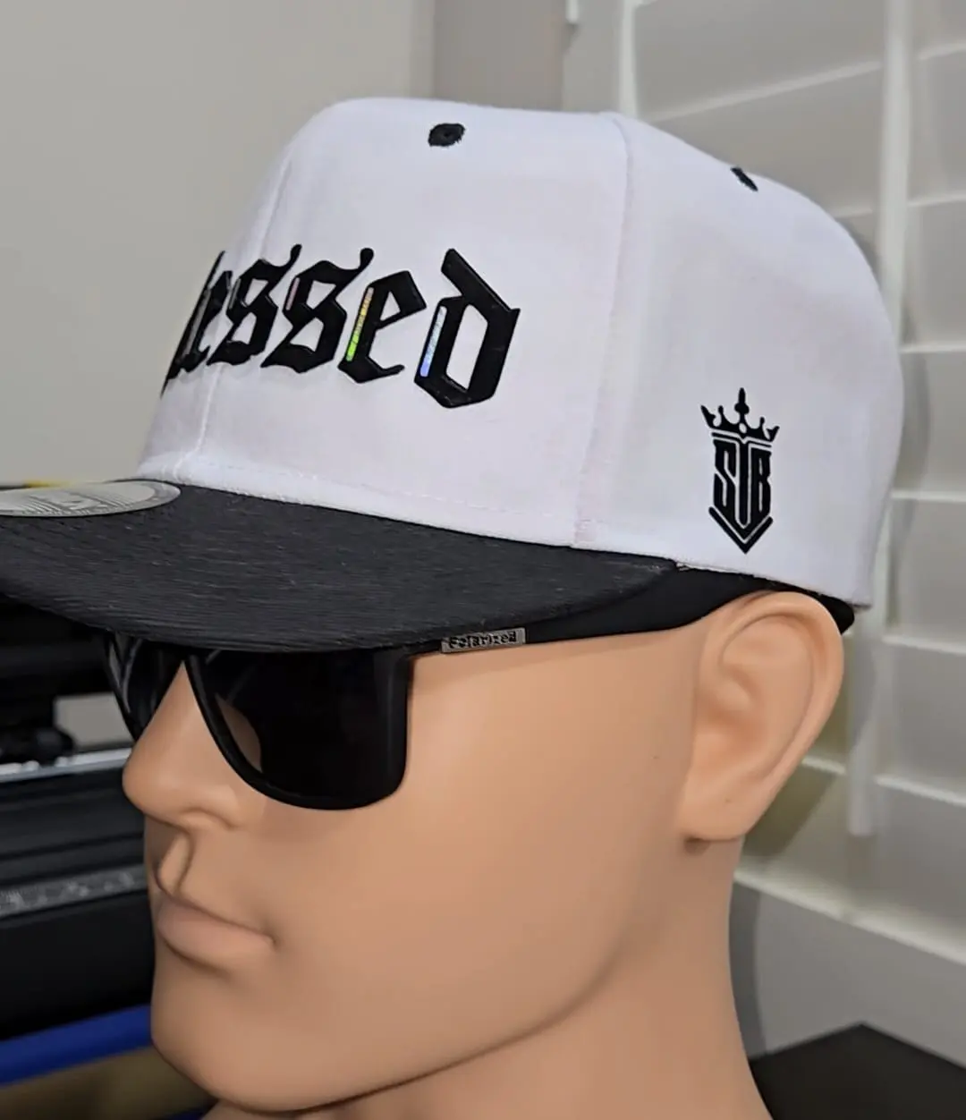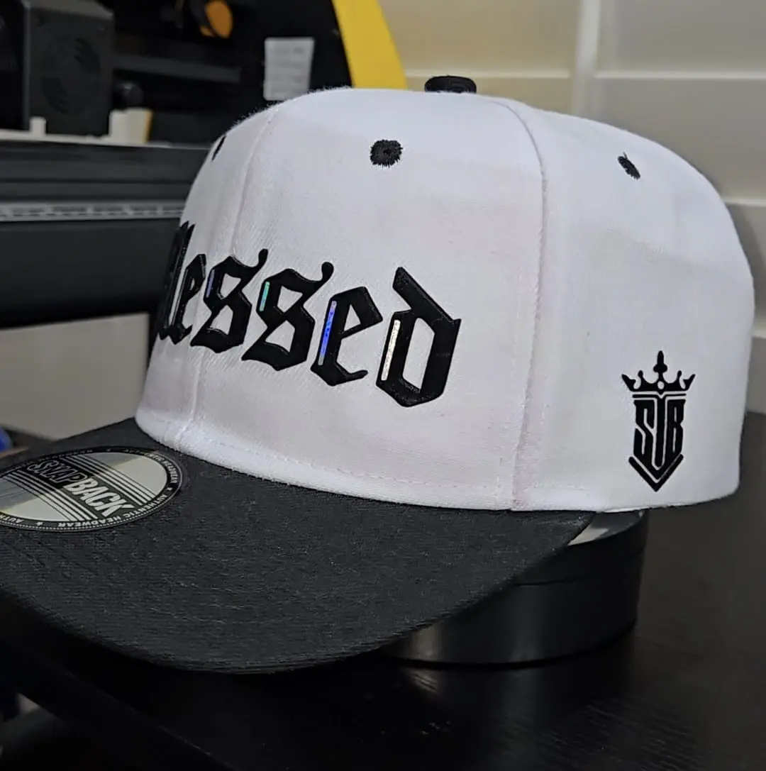 Sebashley Gorra Blessed 3D Alta Densidad SnapBack White & Black Adjustable Hat Unisex "Blessed" Design