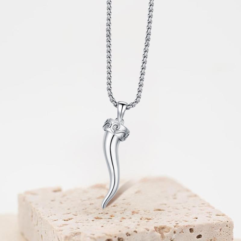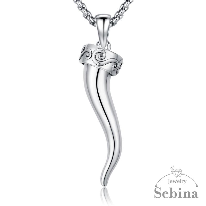 5. Sebina S925 Italian Horn Necklace Cornicello Charm 925 Sterling Silver Jewelry Relief Vintage Retro Italian Horn Pendant Necklace Gifts for Women Men Birthday Anniversary Lover Graduation