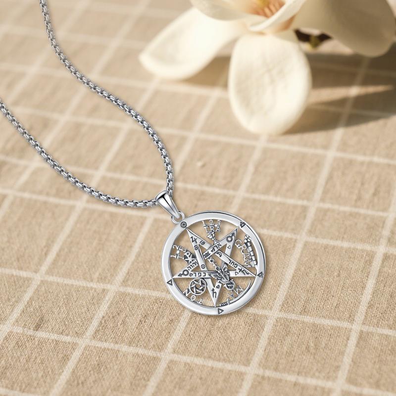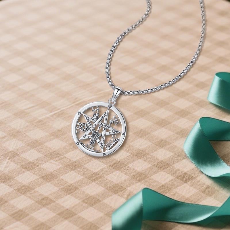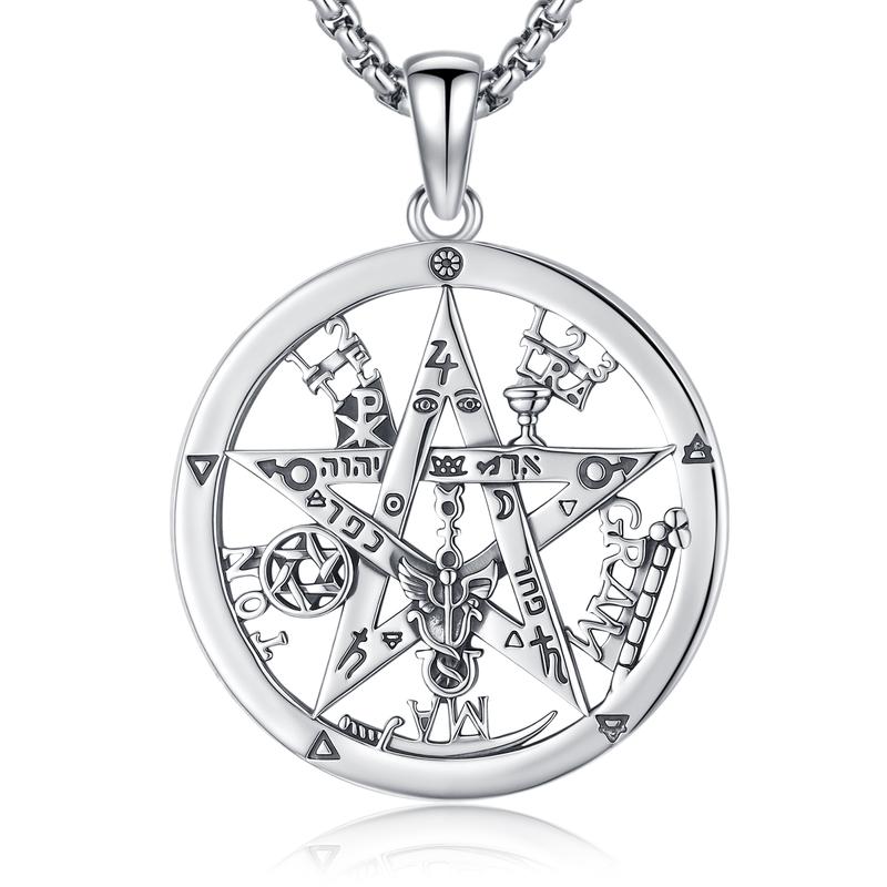Sebina S925 Tetragrammaton Necklace Tetragrammaton De Plata 925 Pentagram Pentacle Pendant Witchcraft Wiccan Pagan Jewelry Amulet Necklace Gifts for Her Him Men Women