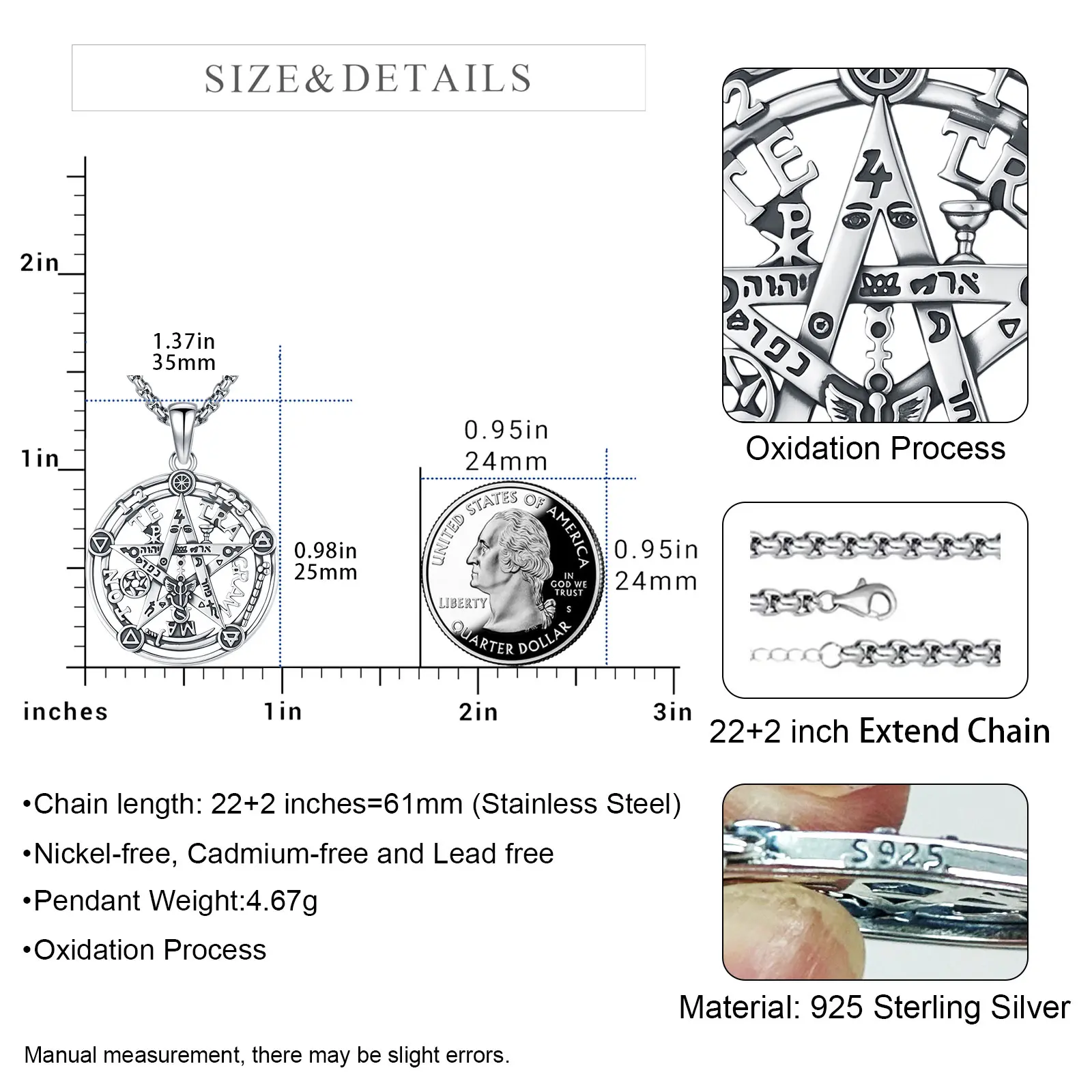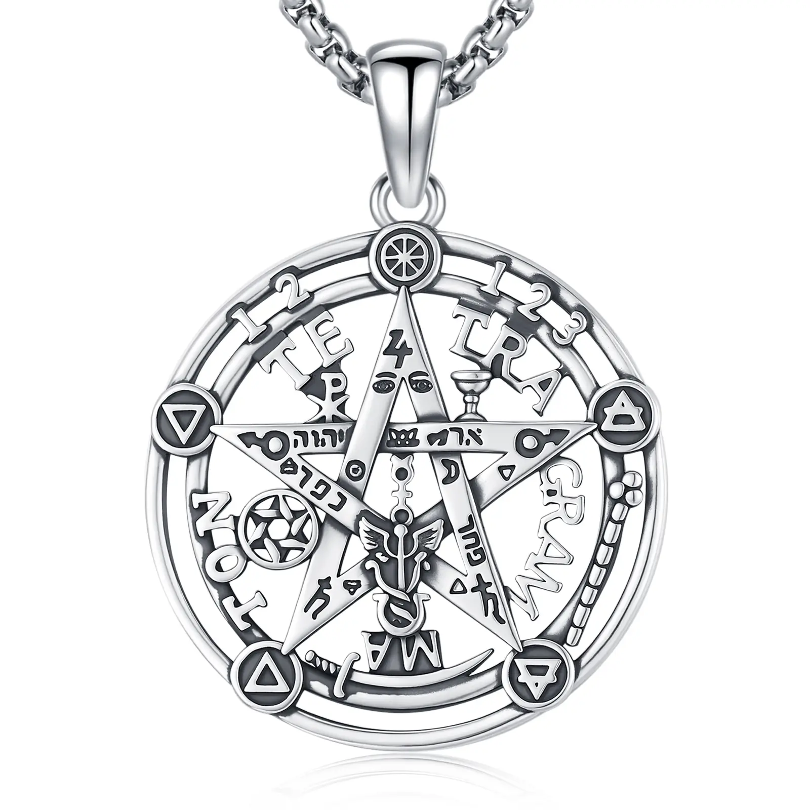· The pendant features the powerful Tetragrammaton symbol, which is believed to bring divine protection and blessings. Crafted from 925 sterling silver , it combines the elements of Spirit, Air, Earth, Fire, and Water to bring balance and harmony to your life.