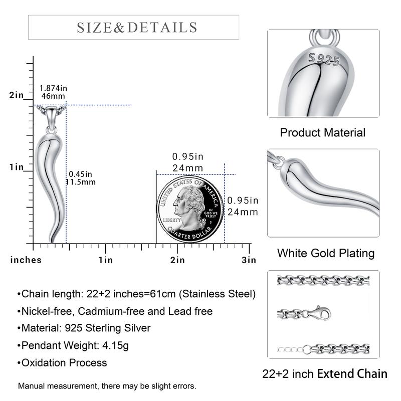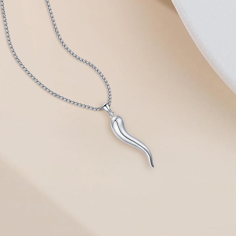 Sebina S925 Italian Horn Necklace Cornicello Charm 925 Sterling Silver Jewelry Italian Horn Pendant Necklace Gifts for Women Men Birthday Anniversary Lover Graduation