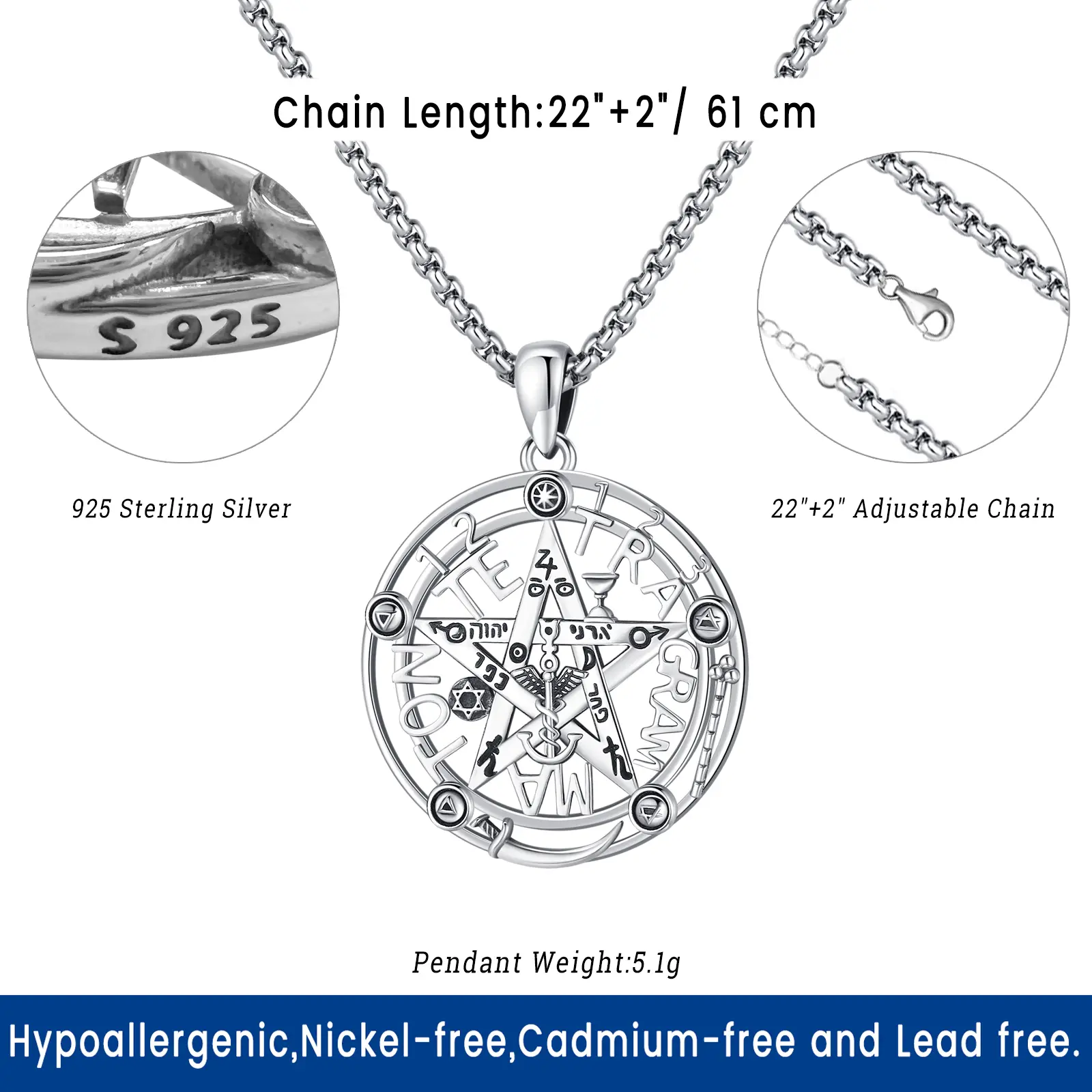 ·The pendant features the powerful Tetragrammaton symbol, which is believed to bring divine protection and blessings. Crafted from 925 sterling silver , it combines the elements of Spirit, Air, Earth, Fire, and Water to bring balance and harmony to your life