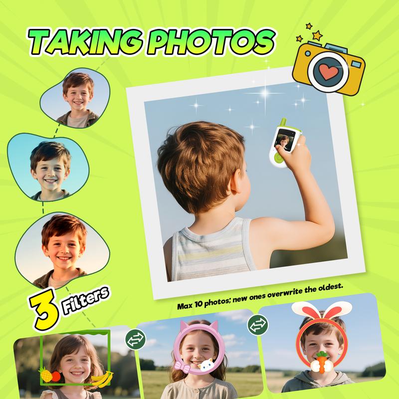 ·【Kids' Video Walkie-Talkie】Designed for kids aged 3-8, this video walkie-talkie lets kids share joyful moments through video calls, text and picture messaging, and voice calls. It adds extra fun to outdoor adventures, camping, and playtime with friends.