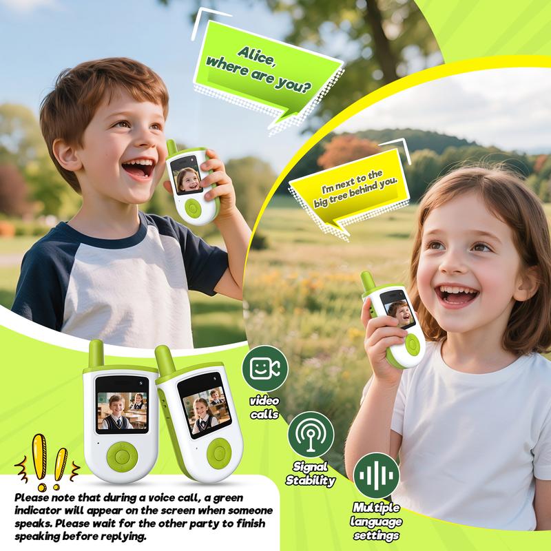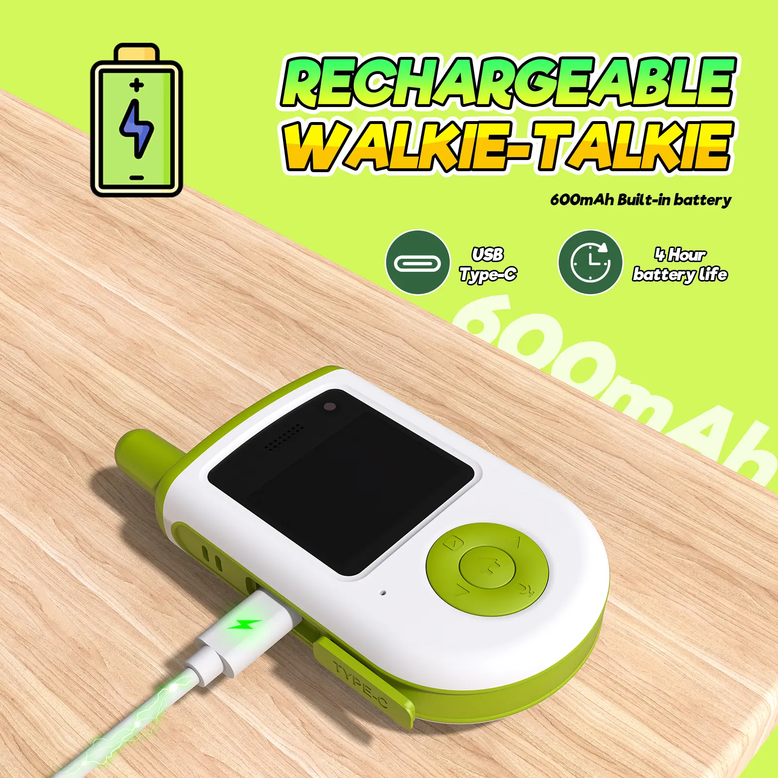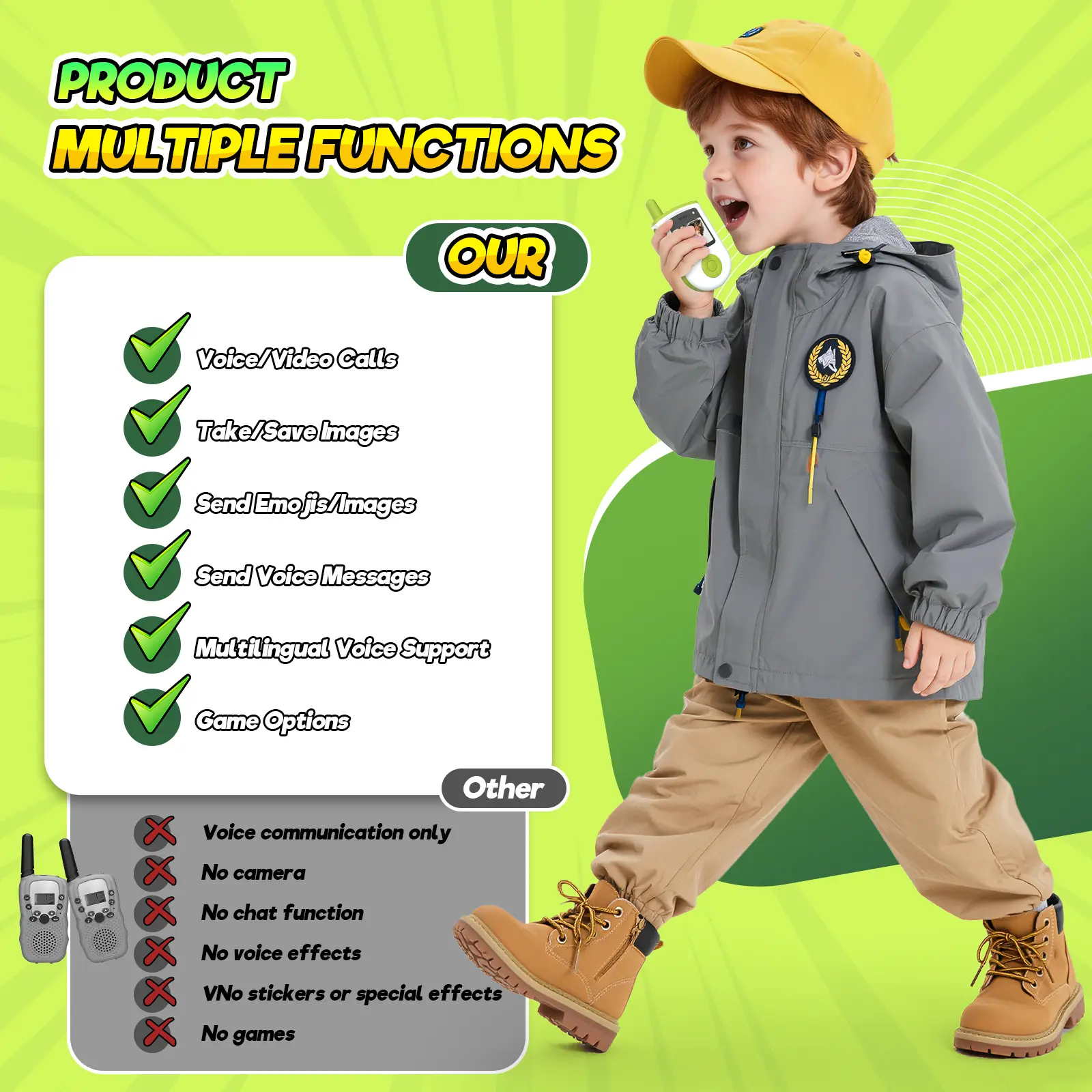 ·【The Fun Gift for Ages 3–8】Kids' video walkie-talkies are always a hit as gifts! This one makes an excellent choice for Christmas, Halloween, birthdays, Easter, and other holidays. Presented in a beautiful gift box for easy storage, these rechargeable walkie-talkies bring endless fun, helping children explore the world and create wonderful memories together.