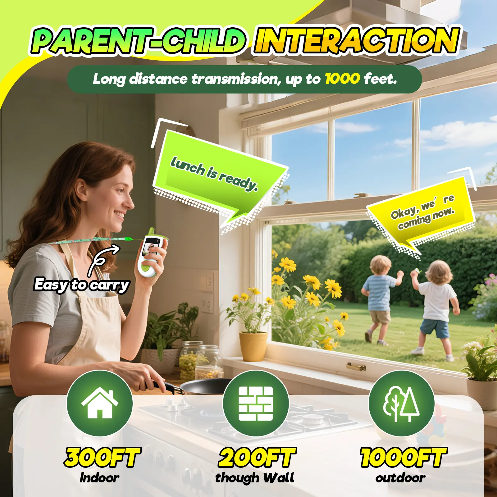 ·【Rechargeable Design】The built-in rechargeable battery eliminates worries about running out of power. Featuring a USB Type-C port, it delivers over 4 hours of talk time with just a 1-hour charge. No complicated setup is needed—it pairs automatically and ensures stable, interference-free signal transmission, making it ideal for parent-child activities.