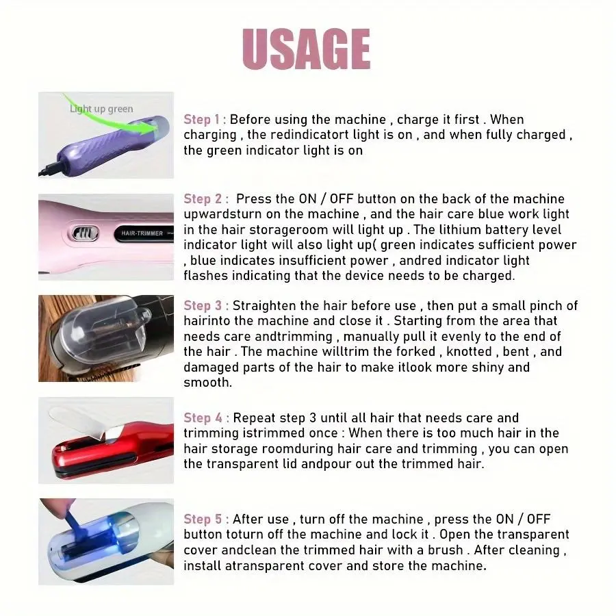 【Dual Functionality】: This product serves as both a hair trimmer and a split end trimmer, catering to diverse hair care needs.