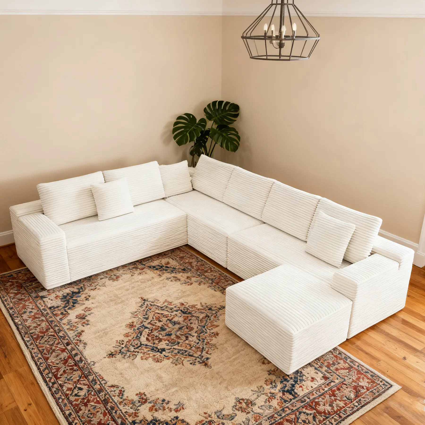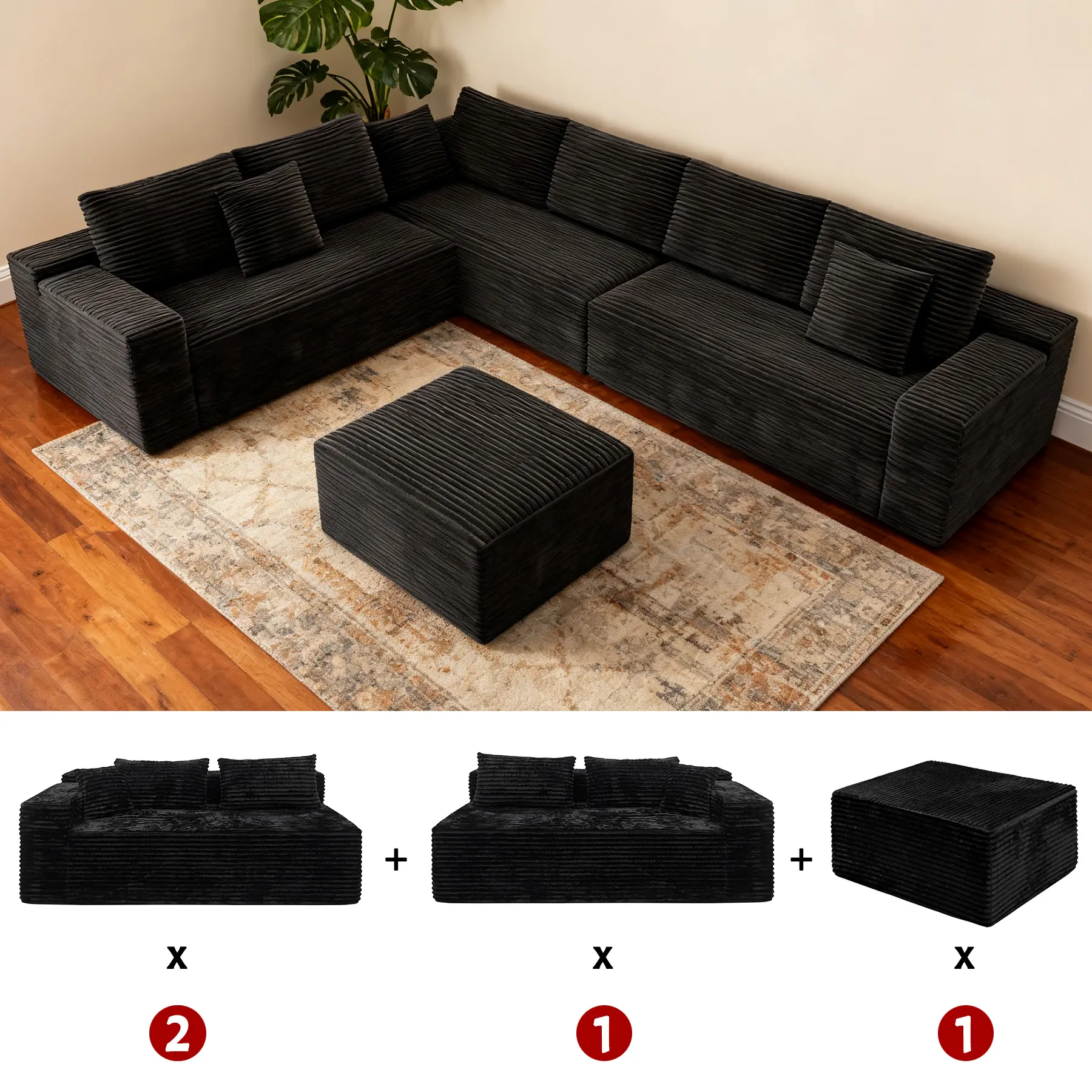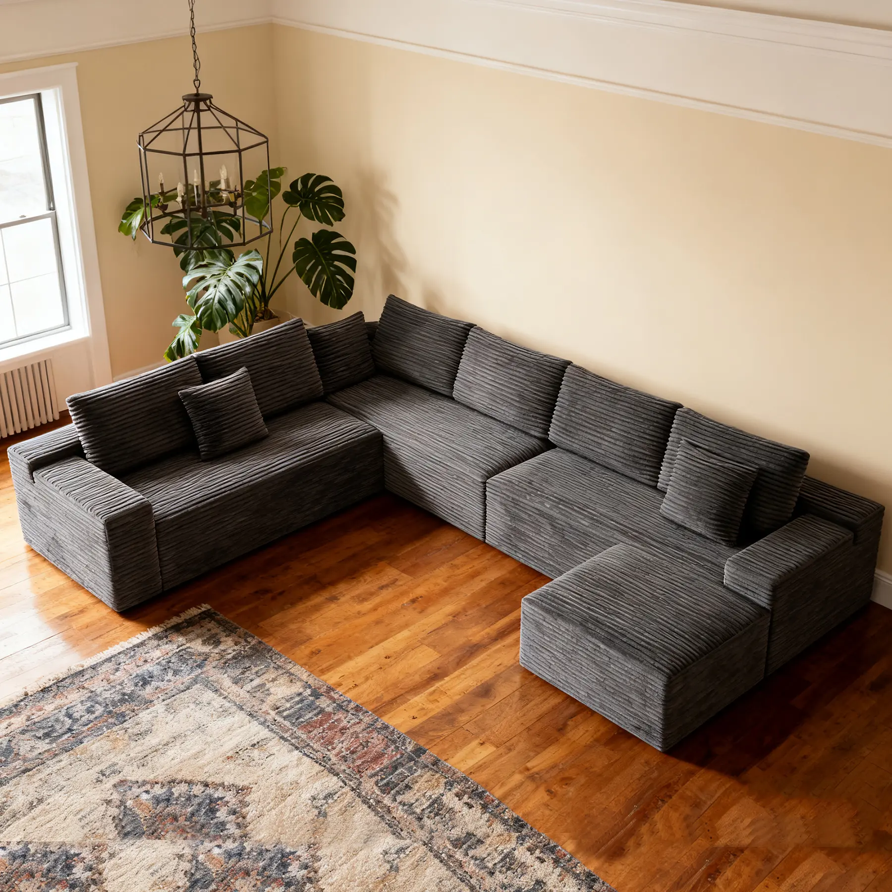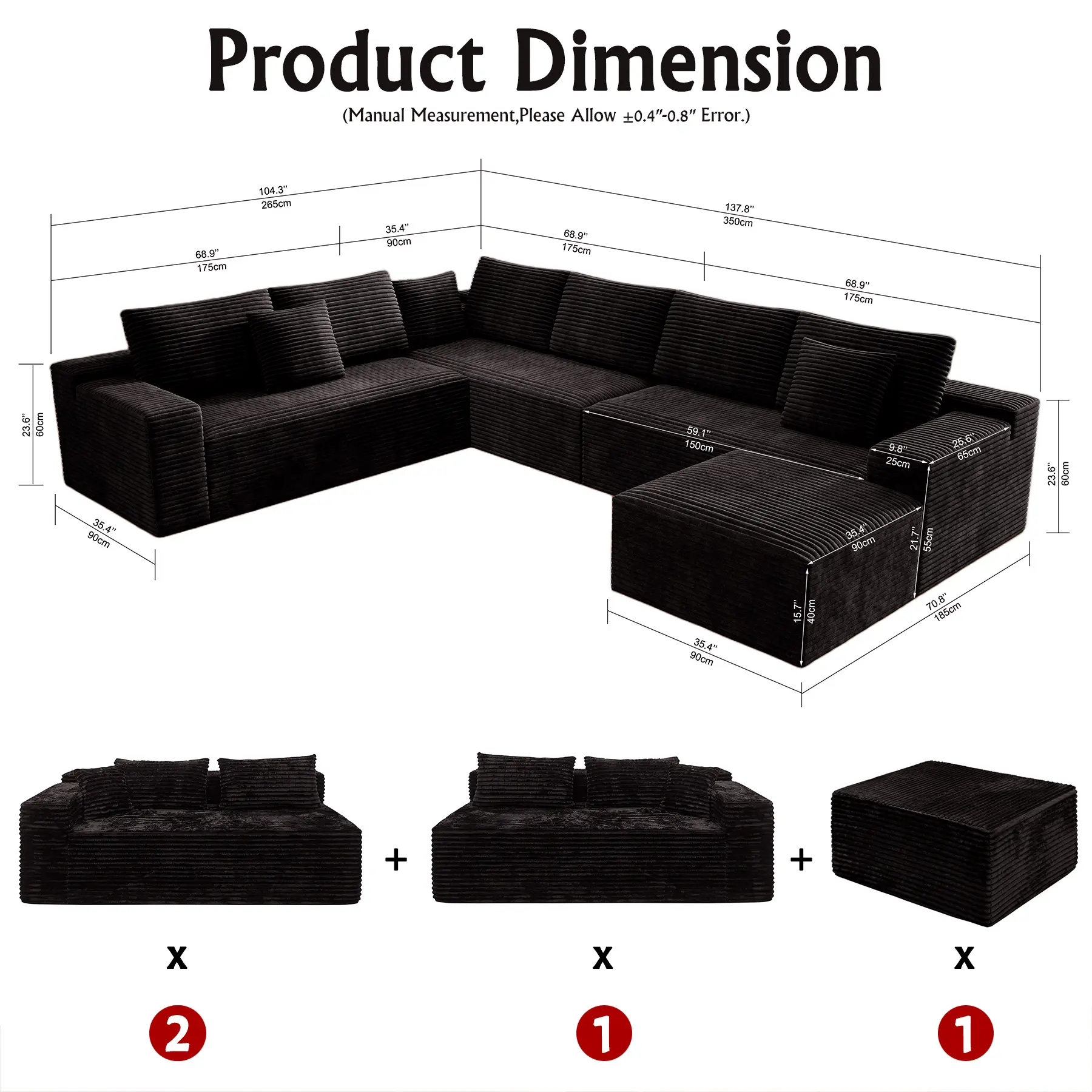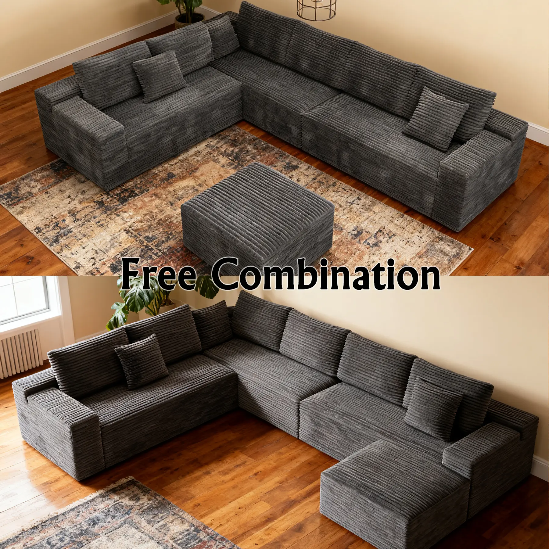 ·Versatile Design: This sectional cloud couch is a big, comfy set with a U-shaped design and a chaise. It's perfect for any living room setup. 🏠