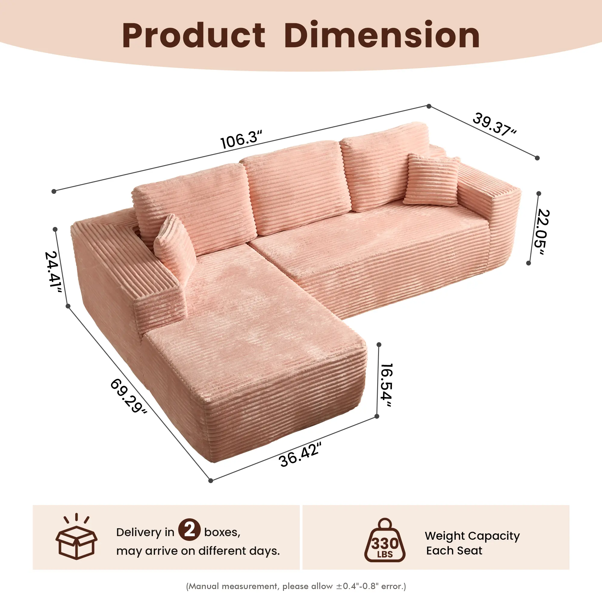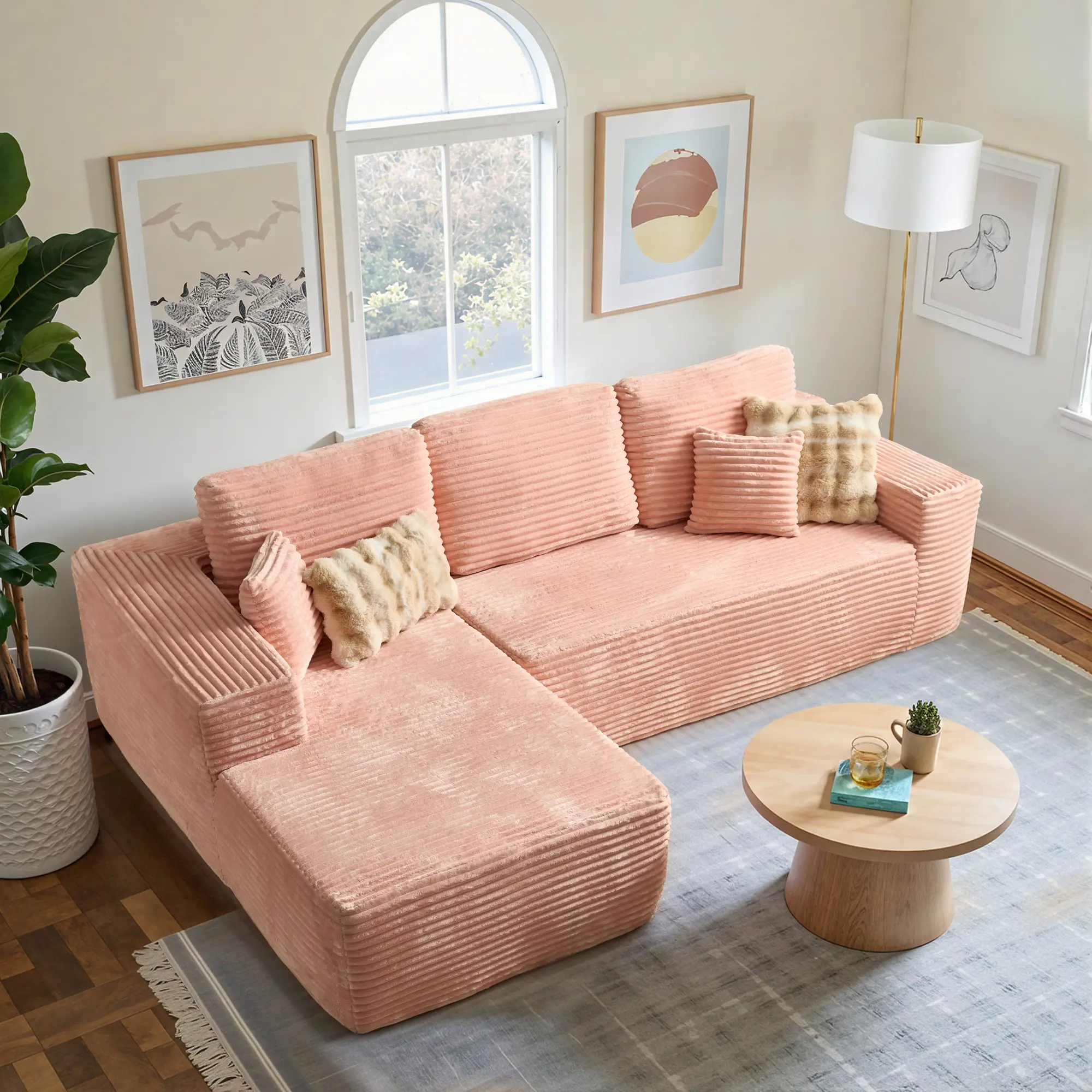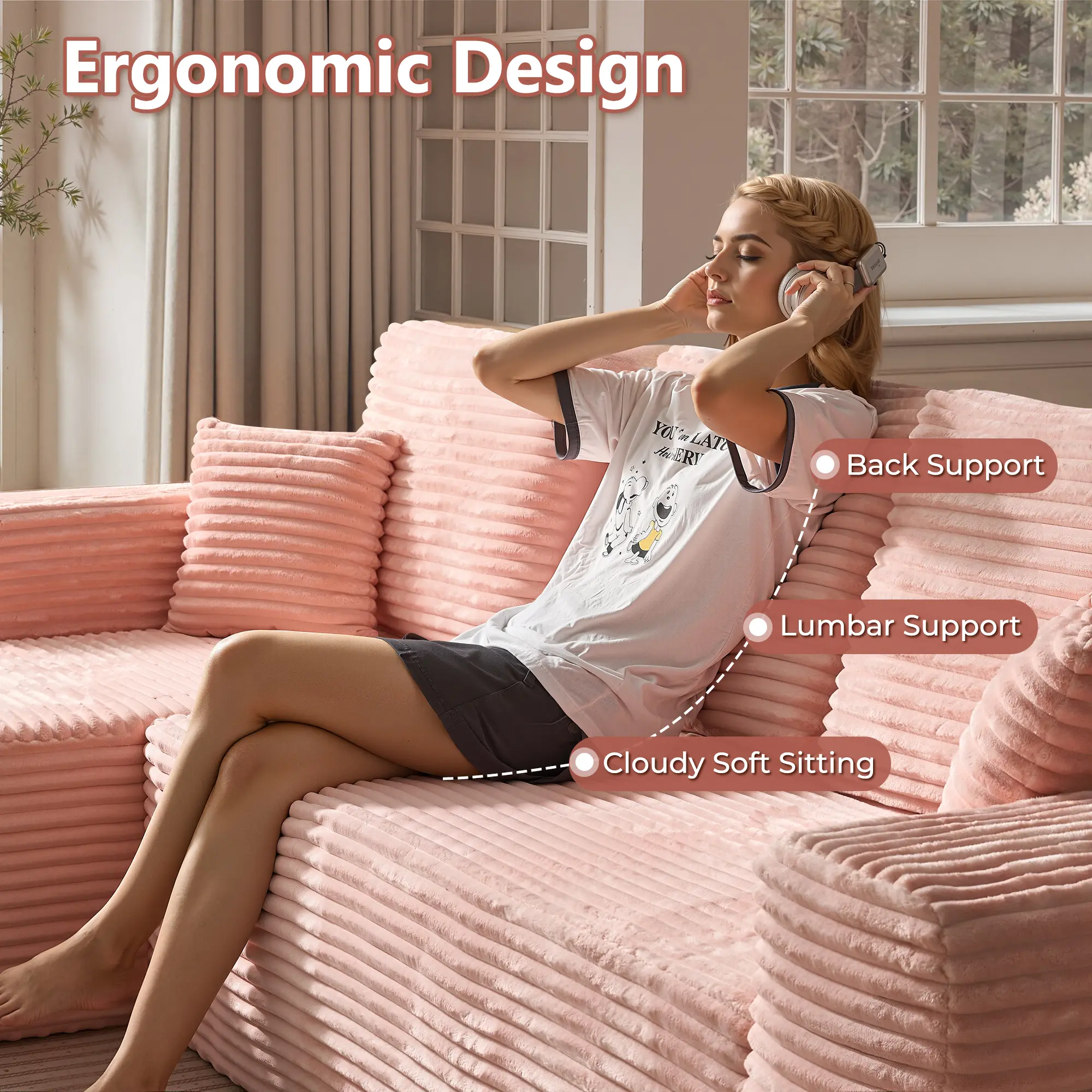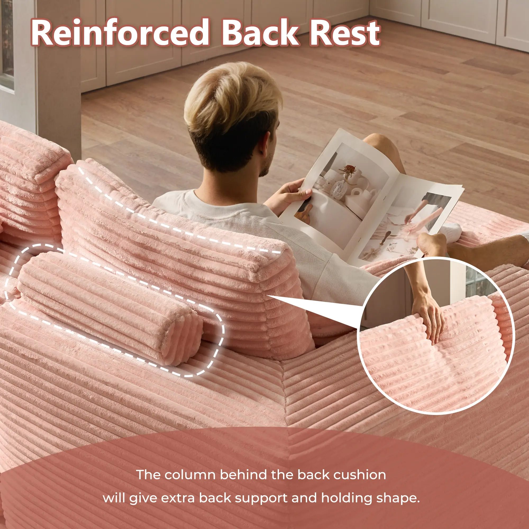 Indulge in our plush corduroy fabric, as soft as silk under your fingertips. Experience the ultimate comfort of the sofa that feels like sitting on a cloud when resting.